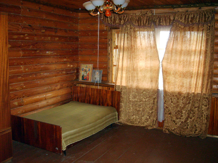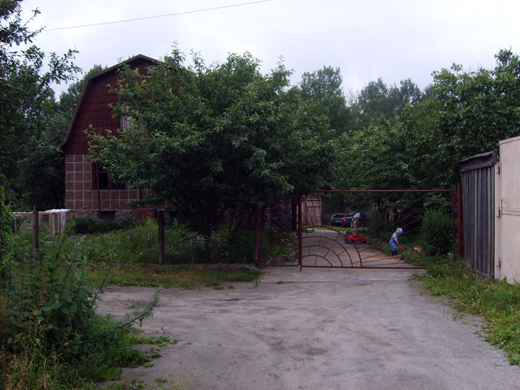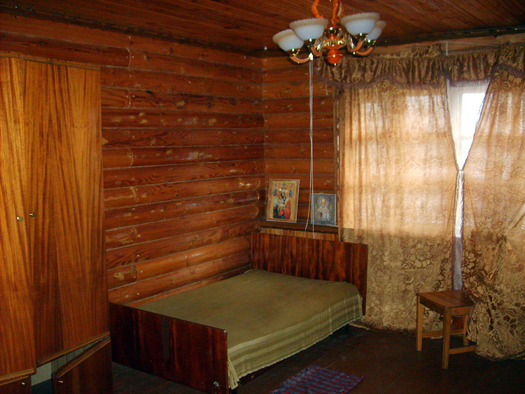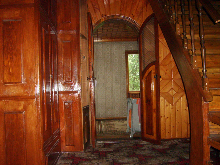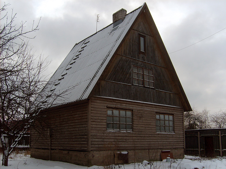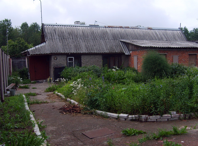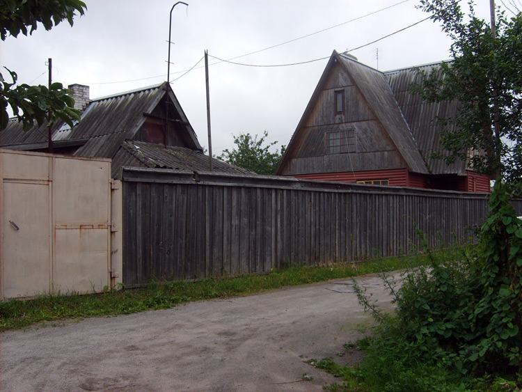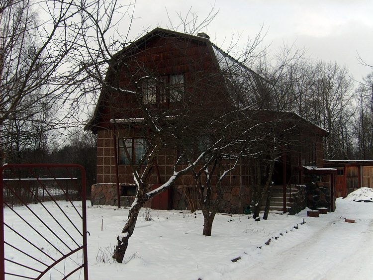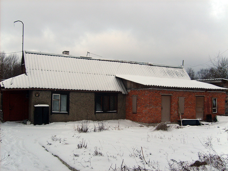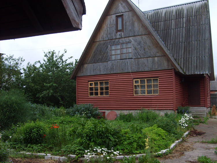 Дом из бруса, облицованный гранитной плитой. Придомовые постройки из каменных бетонных блоков, ранее использовались под мастерские (столярное производство).