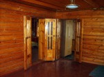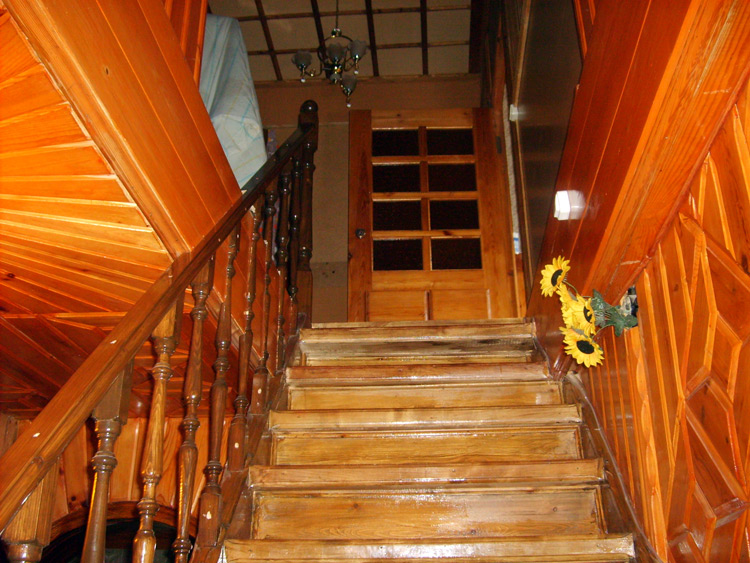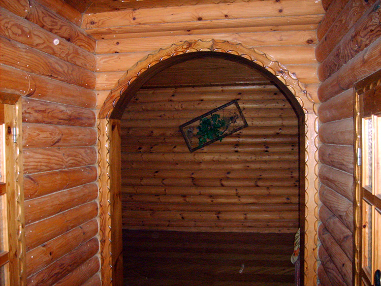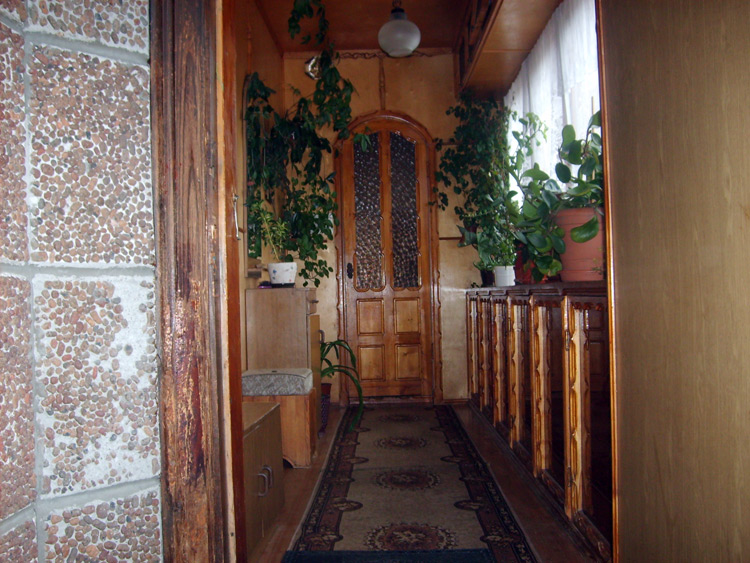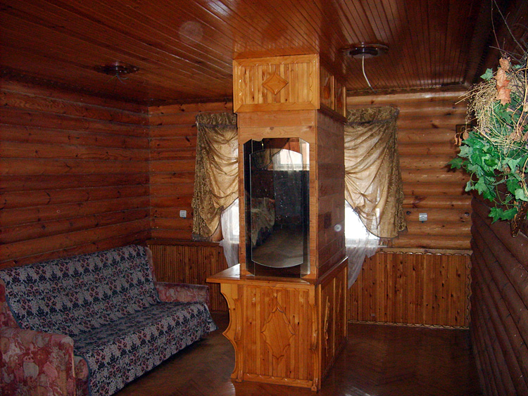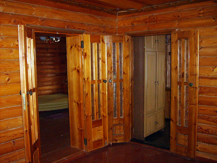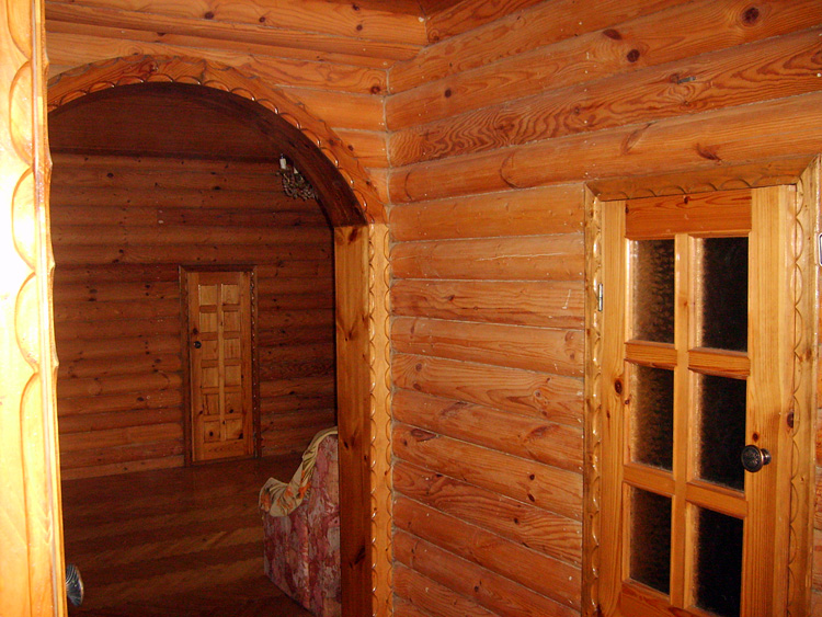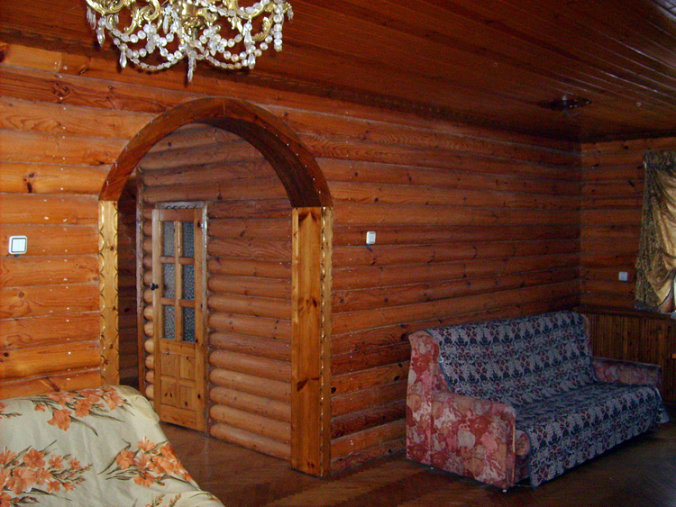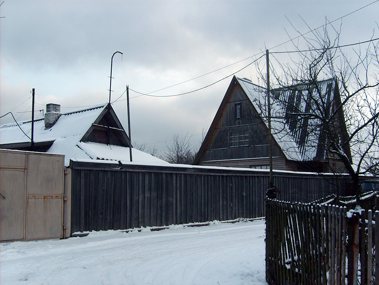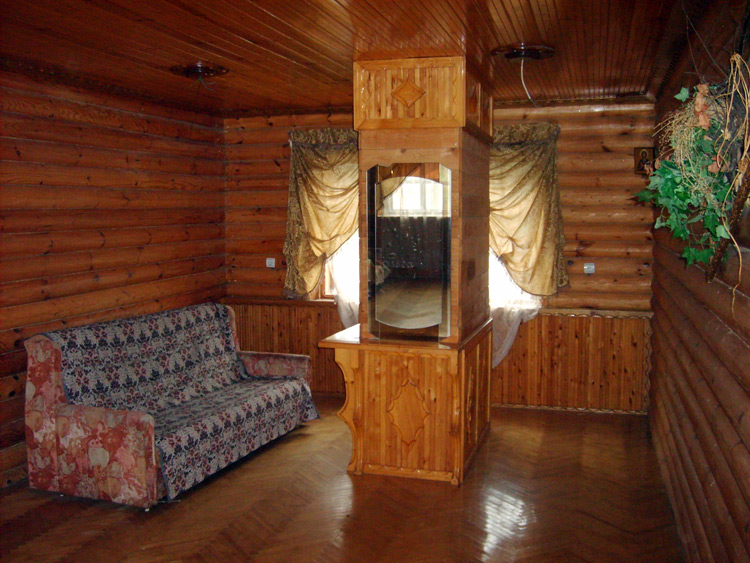 Дом из бруса, облицованный гранитной плитой. Придомовые постройки из каменных бетонных блоков, ранее использовались под мастерские (столярное производство).