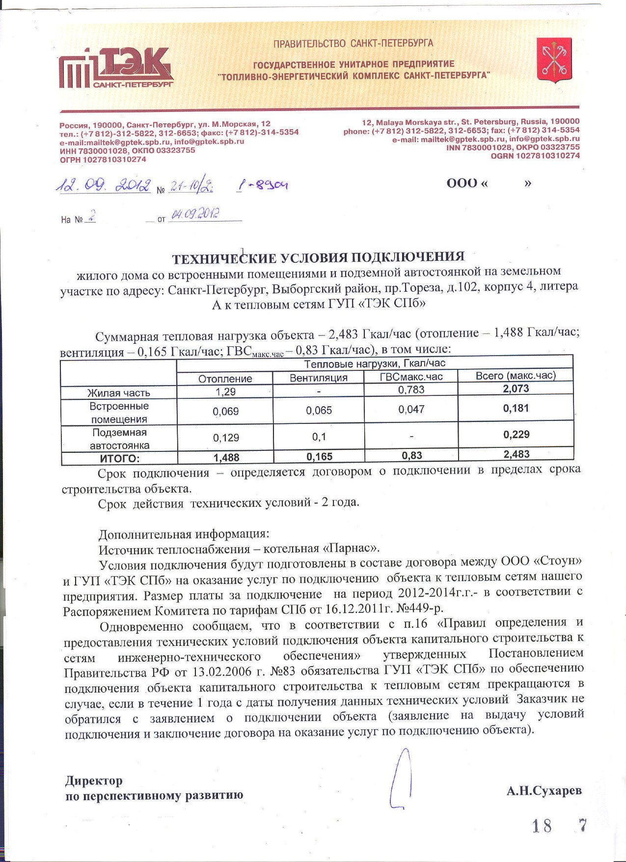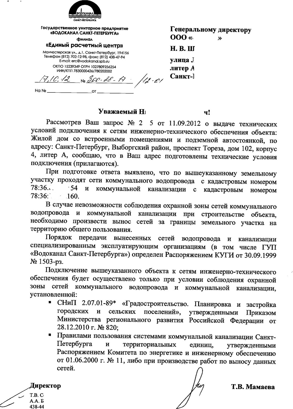 Получены технические условия (ТУ) «Водоканал Санкт-Петербурга»