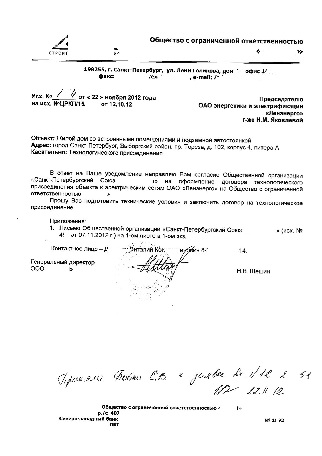 - Заключён договор с ТЭК СПб о подключении объекта к тепловым сетям