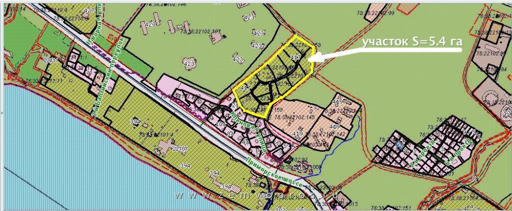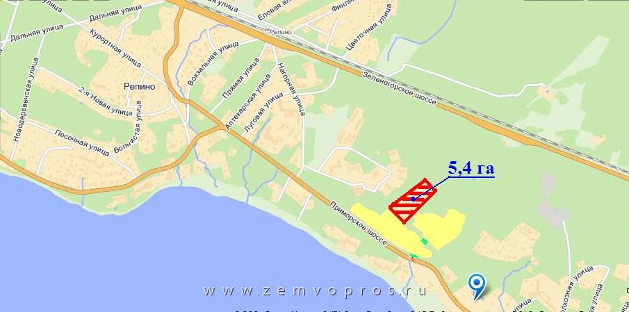Земельный участок общей площадью 5.4 га для дачного строительства в посёлке Репино.
