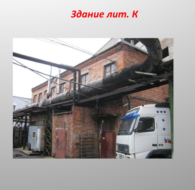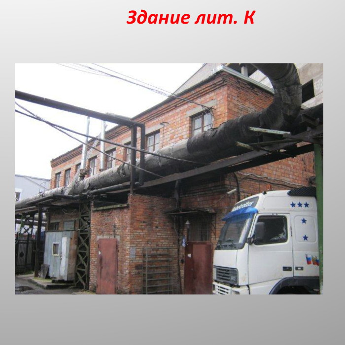 - Нежилое здание лит. Е и нежилое здание лит. К обеспечены централизованным снабжением от городских магистралей: электроснабжение, водоснабжение/водоотведение, теплоснабжение и канализация.