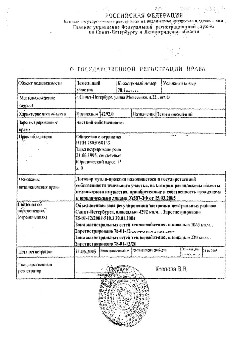 Имущественный комплекс на земельном участке площадью 4292 м2 в Центральном районе Санкт-Петербурга на ул. Моисеенко.