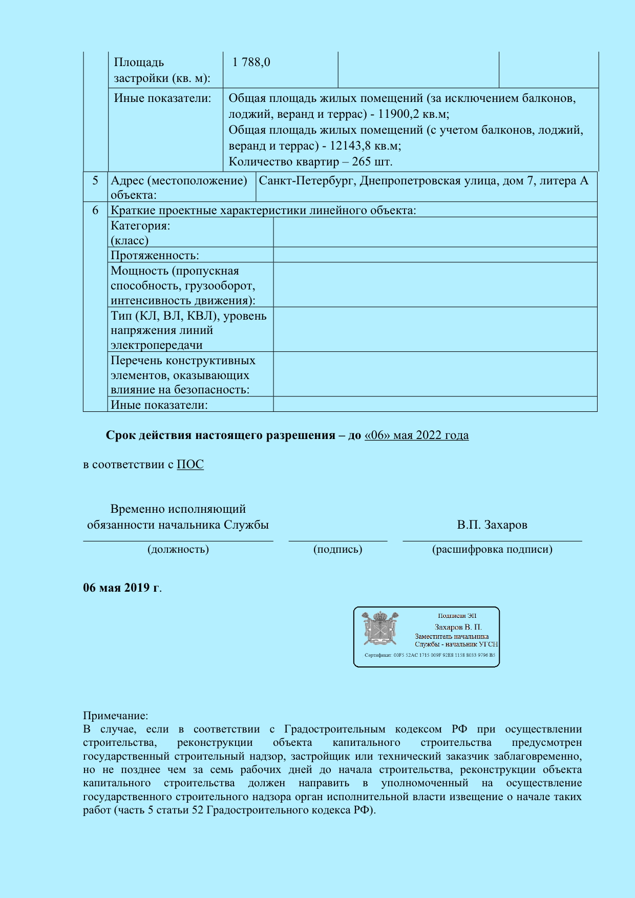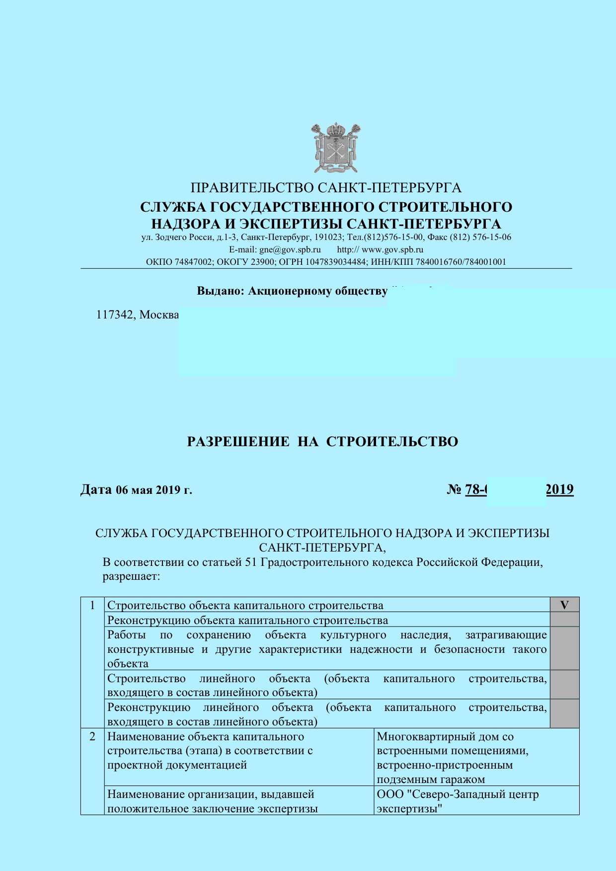 - Разрешение на строительство от 06.05.2019 со сроком действия до 06.05.2022
