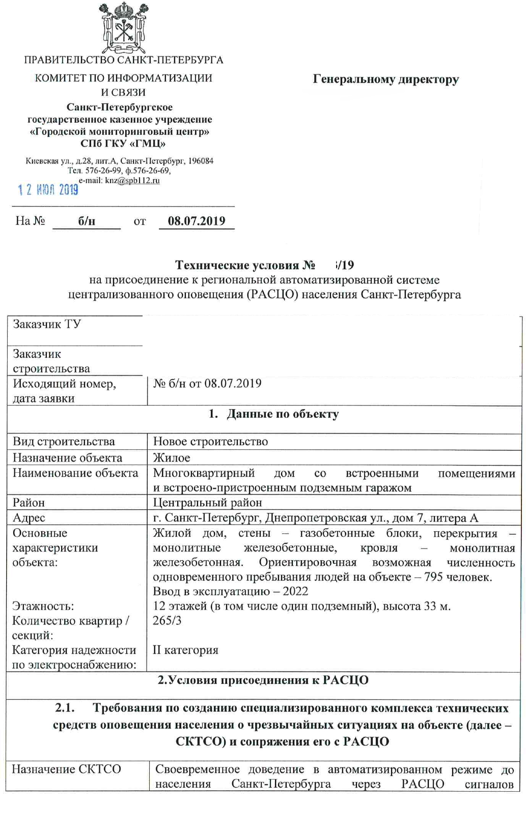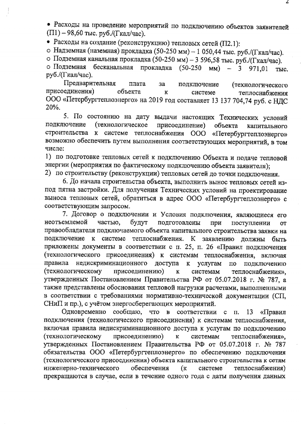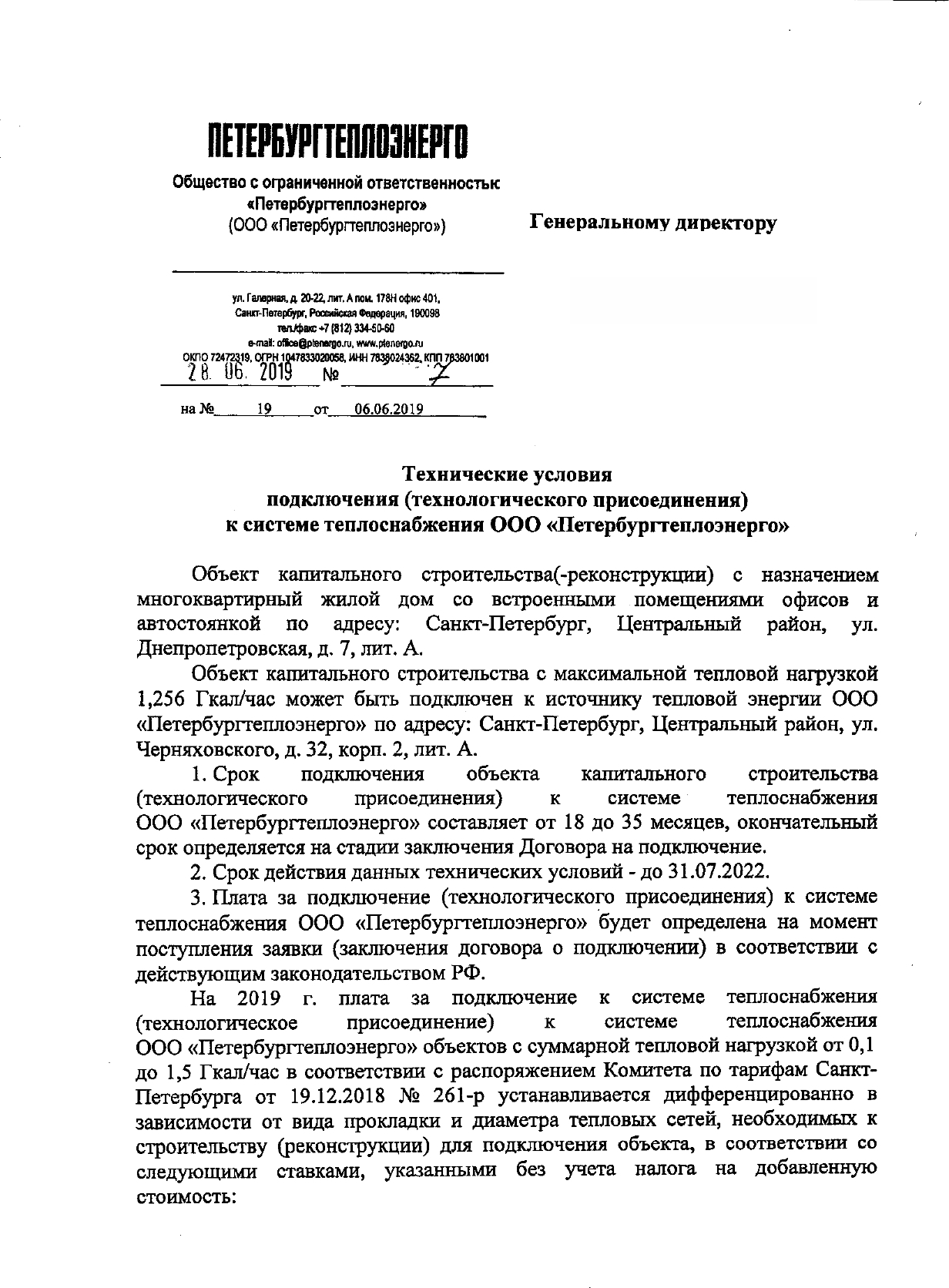 - Технические условия на технологическое присоединения к системе теплоснабжения от 28.06.2019