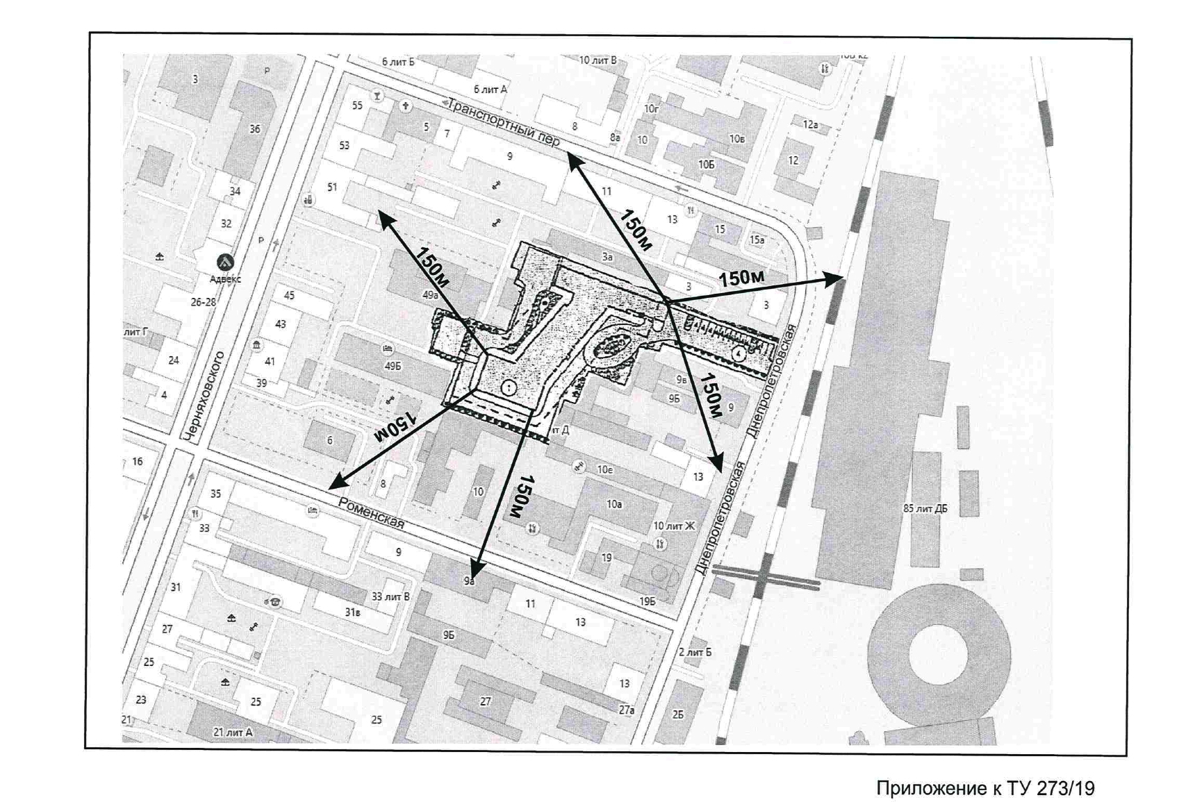 Земельный участок площадью 6072 м2 с разрешением на строительство 11 этажного жилого дома 11-ти этажного жилого дома со встроенными помещениями и встроенной-пристроенным подземным гаражом на ул. Днепропетровская