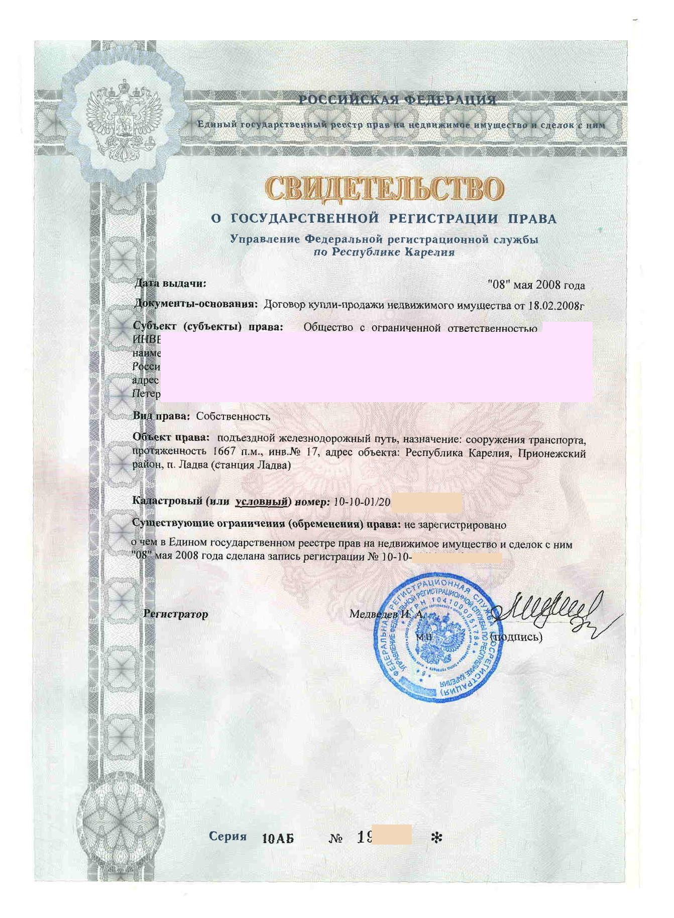 - подъездной железнодоржный путь протяжённостью 1 667 п.м - в собственности