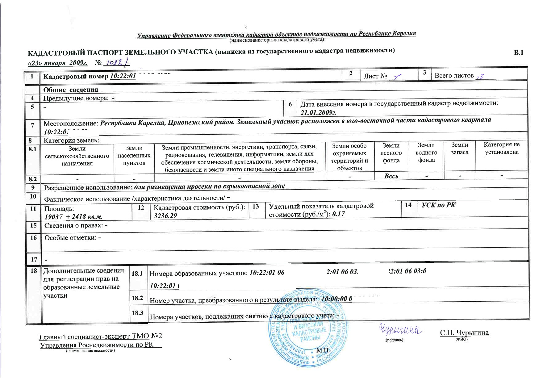 - для участка площадью S = 19037 м2 - для просеки во взрывоопасной зоне