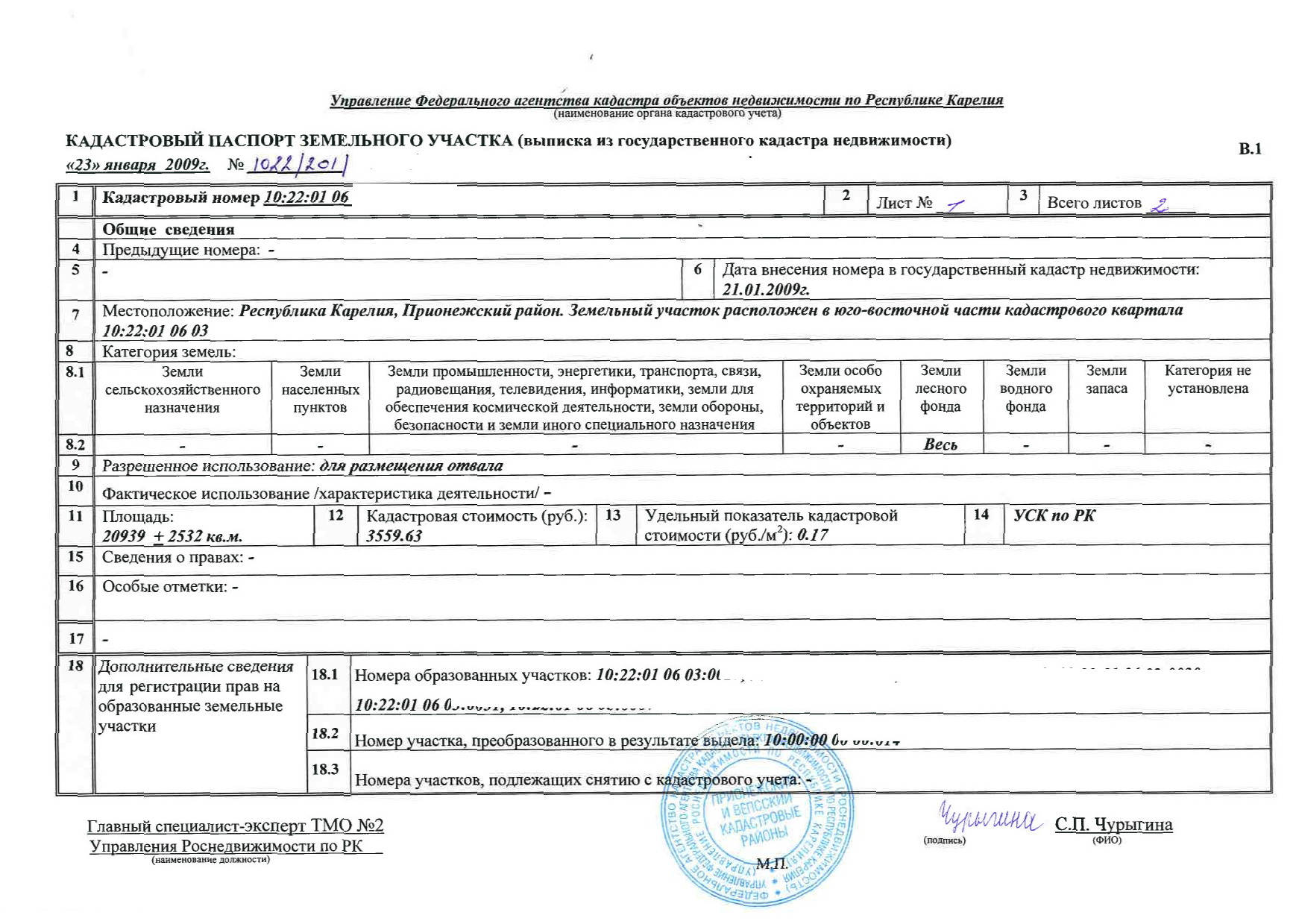 - для участка площадью S = 20939 м2 - для размещения отвала