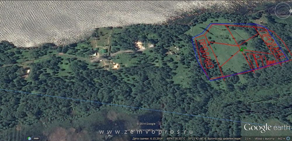Шесть земельных участков для ведения крестьянско-фермерского хозяйства (КФХ) площадью 50 соток каждый на первой, второй и третьей линиях озера Отрадное вблизи посёлка Приладожское