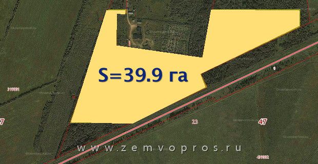 Земельный участок площадью 39.9 га для размещения производственных объектов вблизи деревни Шаглино