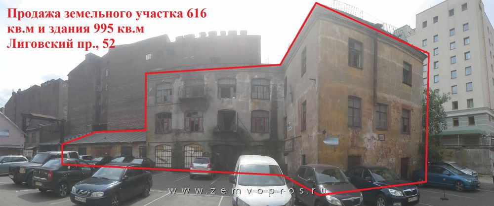Земельный участок площадью 616 м2 со зданием под реконструкцию для строительства бизнес-центра со встроенной автостоянкой на Лиговском проспекте.