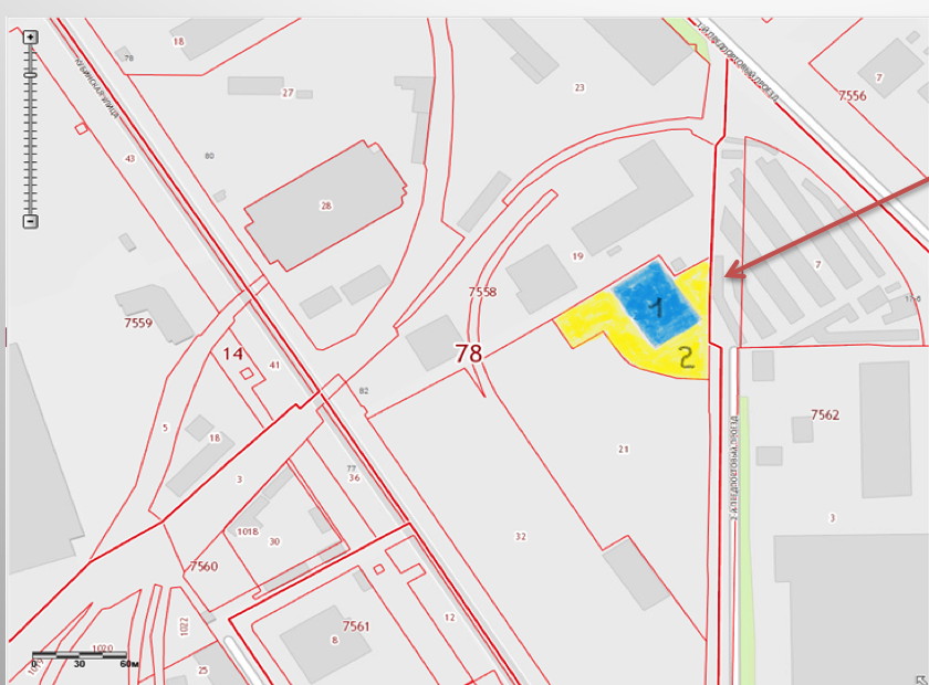Земельный участок площадью 0.57 га с административно-производственным зданием между ул. Кубинская и 2-м Предпортовым проездом.