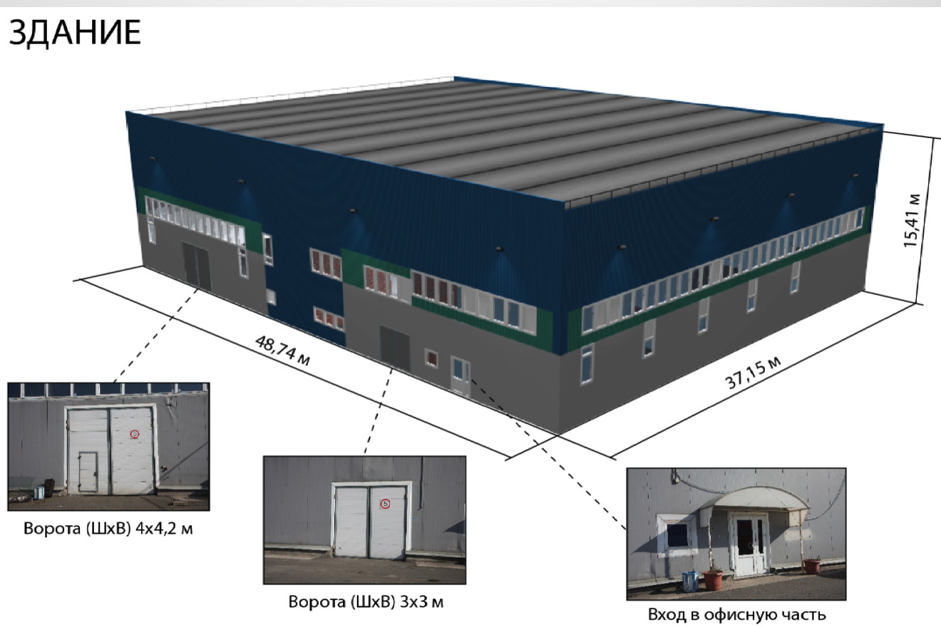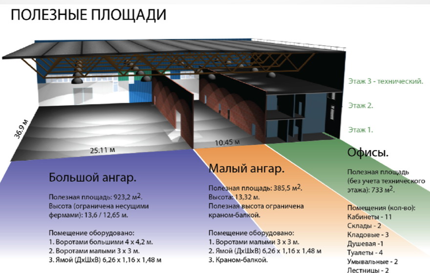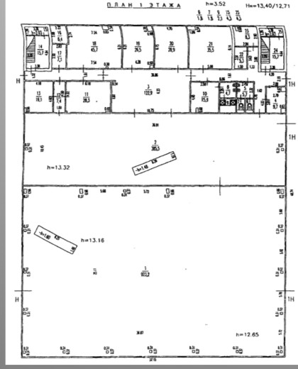 - Большая часть помещений в здании может использоваться как производственные или складские площади - высота потолков около 13 м.