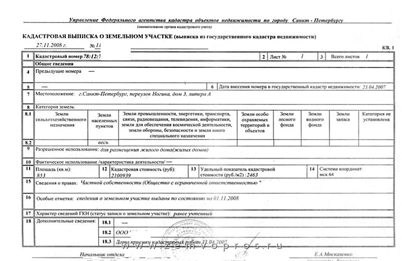 - Кадастровый паспорт земельного участка от 27.11.2008г.