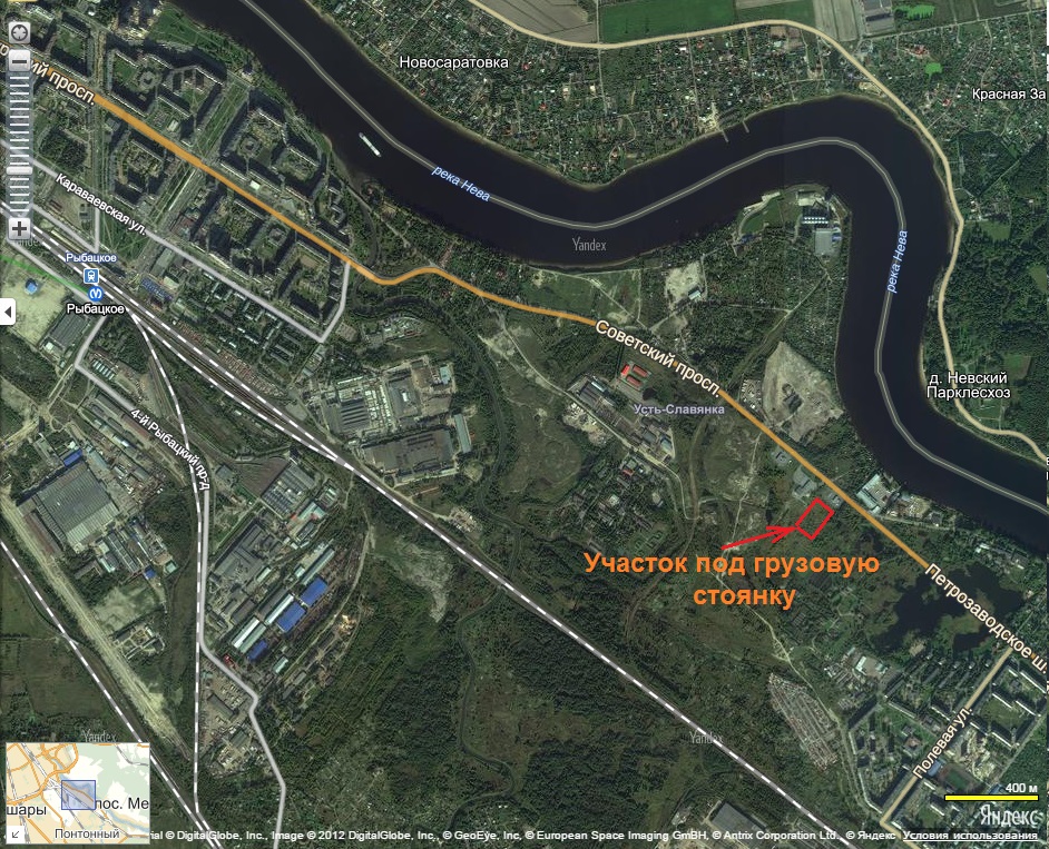 Санкт-Петербург, Невский район, Усть-Славянка, Советский проспект, южнее дома 59.