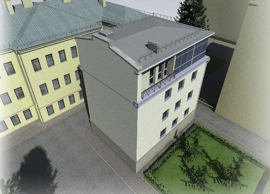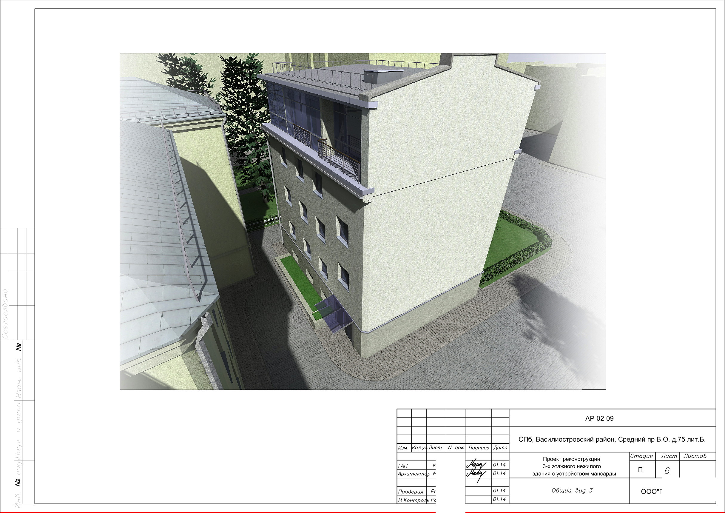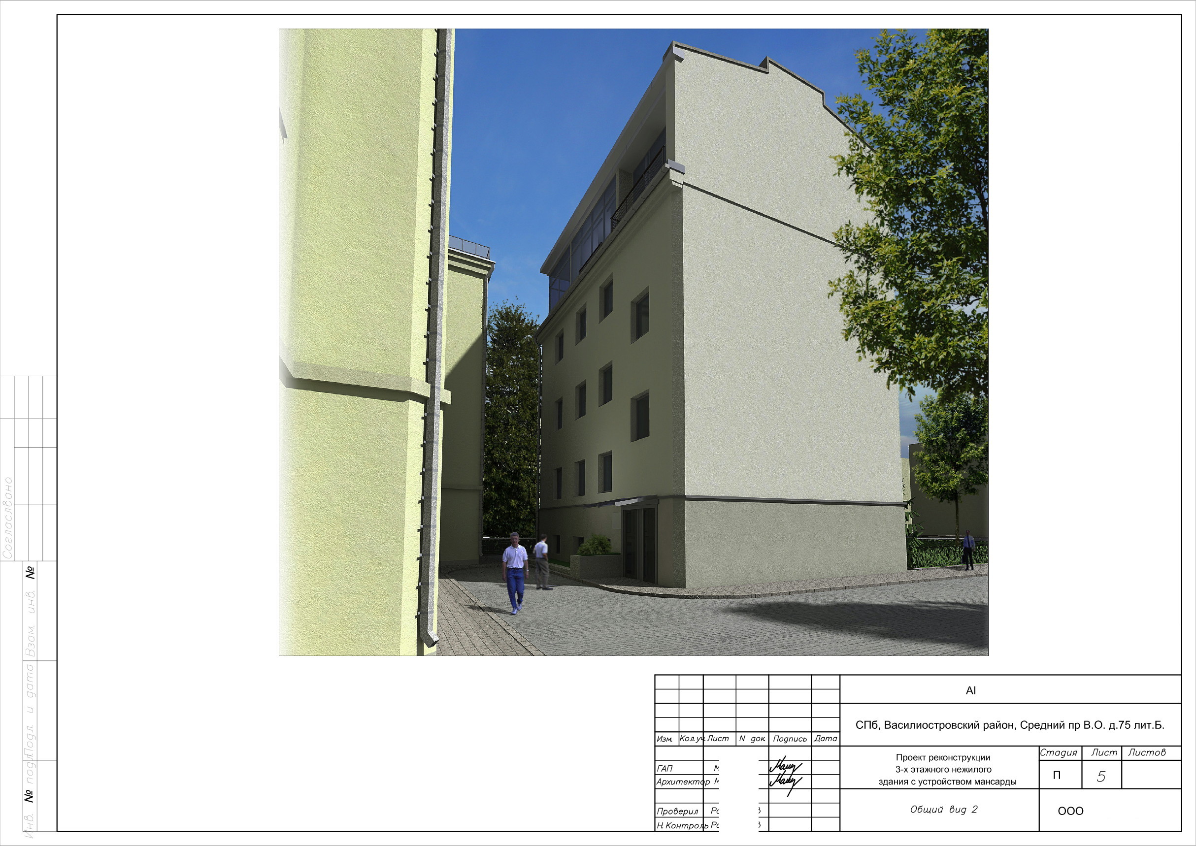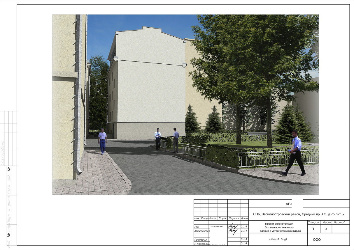 Реконструкция 3-х этажного нежилого здания с устройством мансарды на земельном участке площадью 125 м2 на Среднем проспекте В.О.