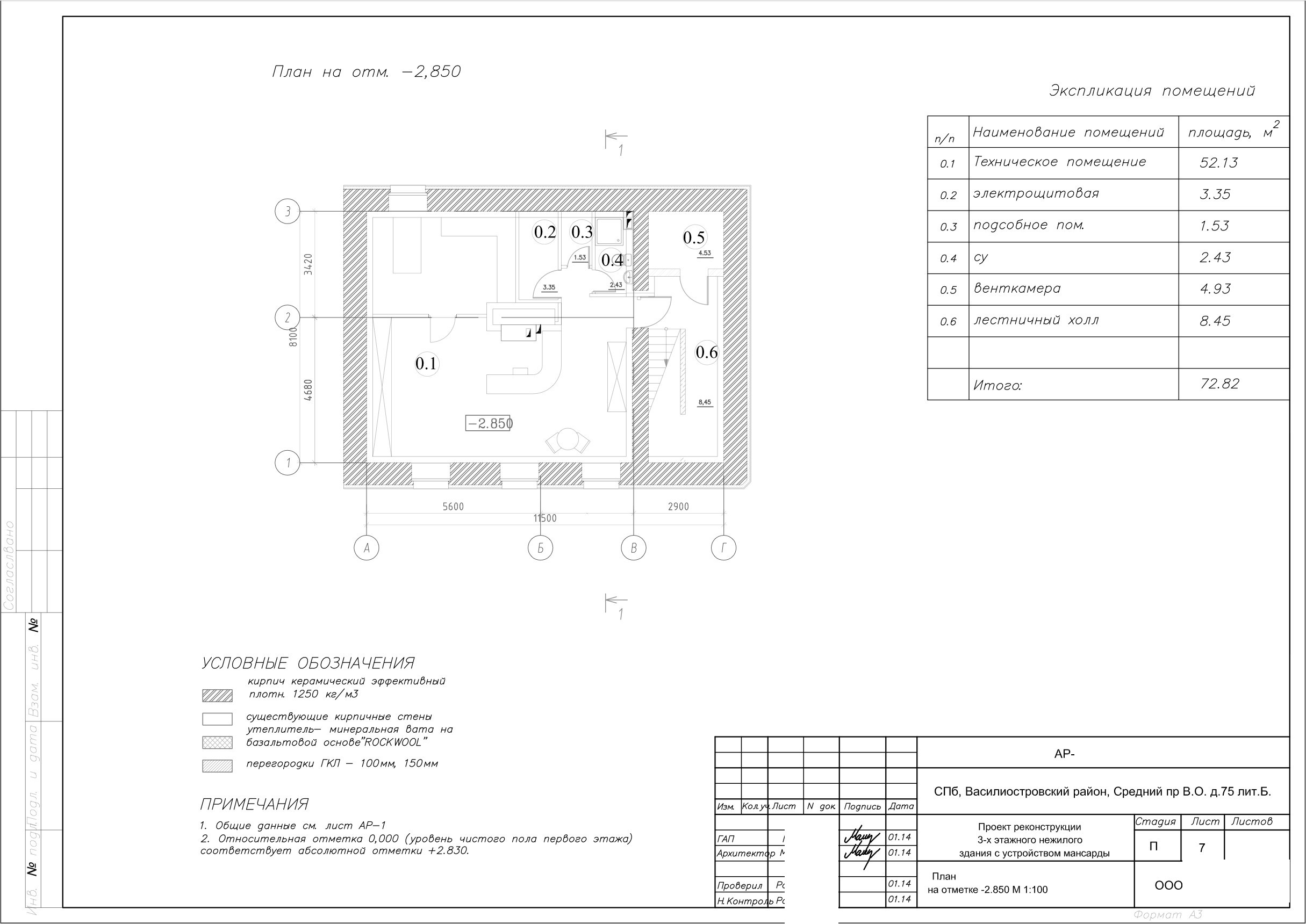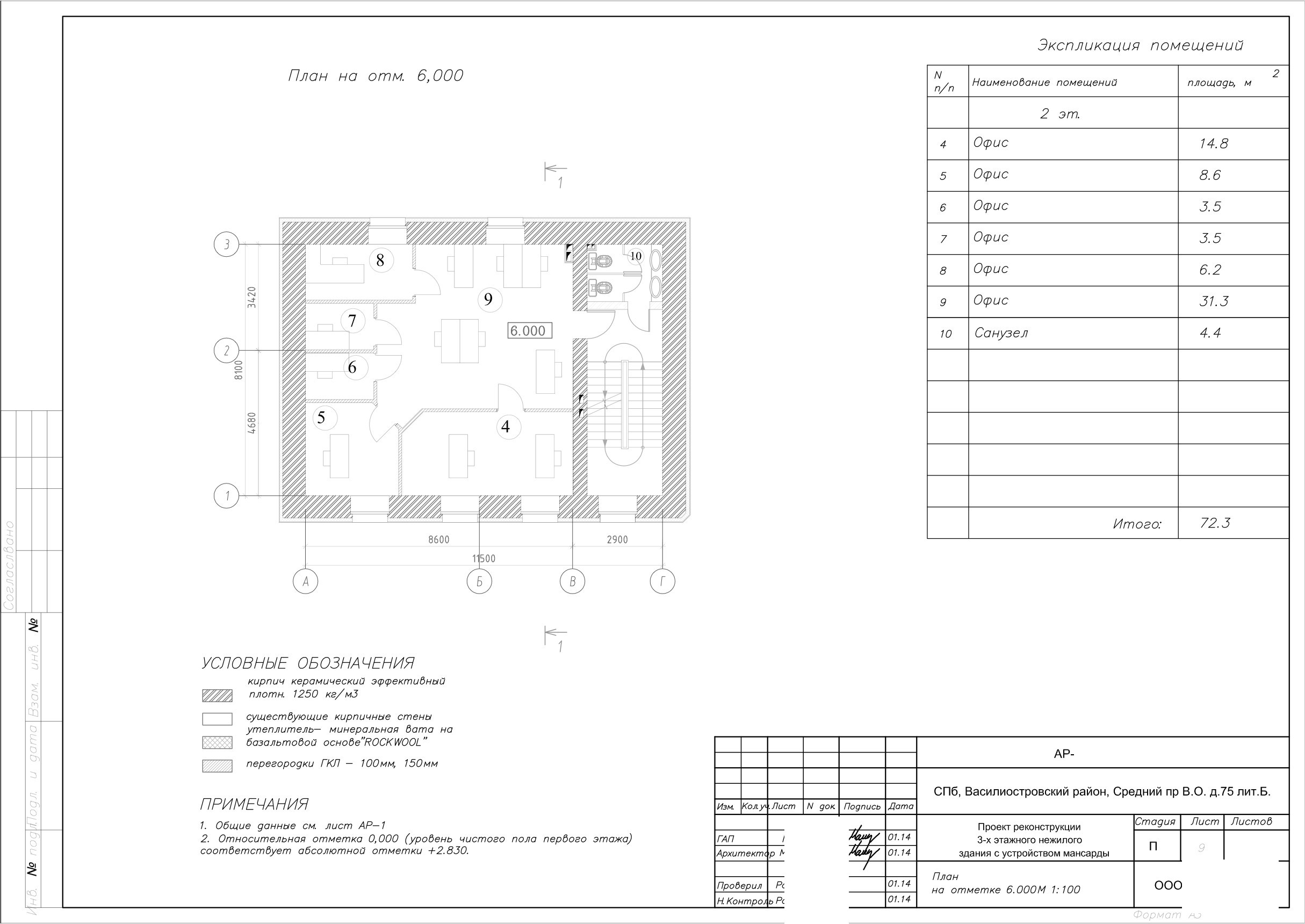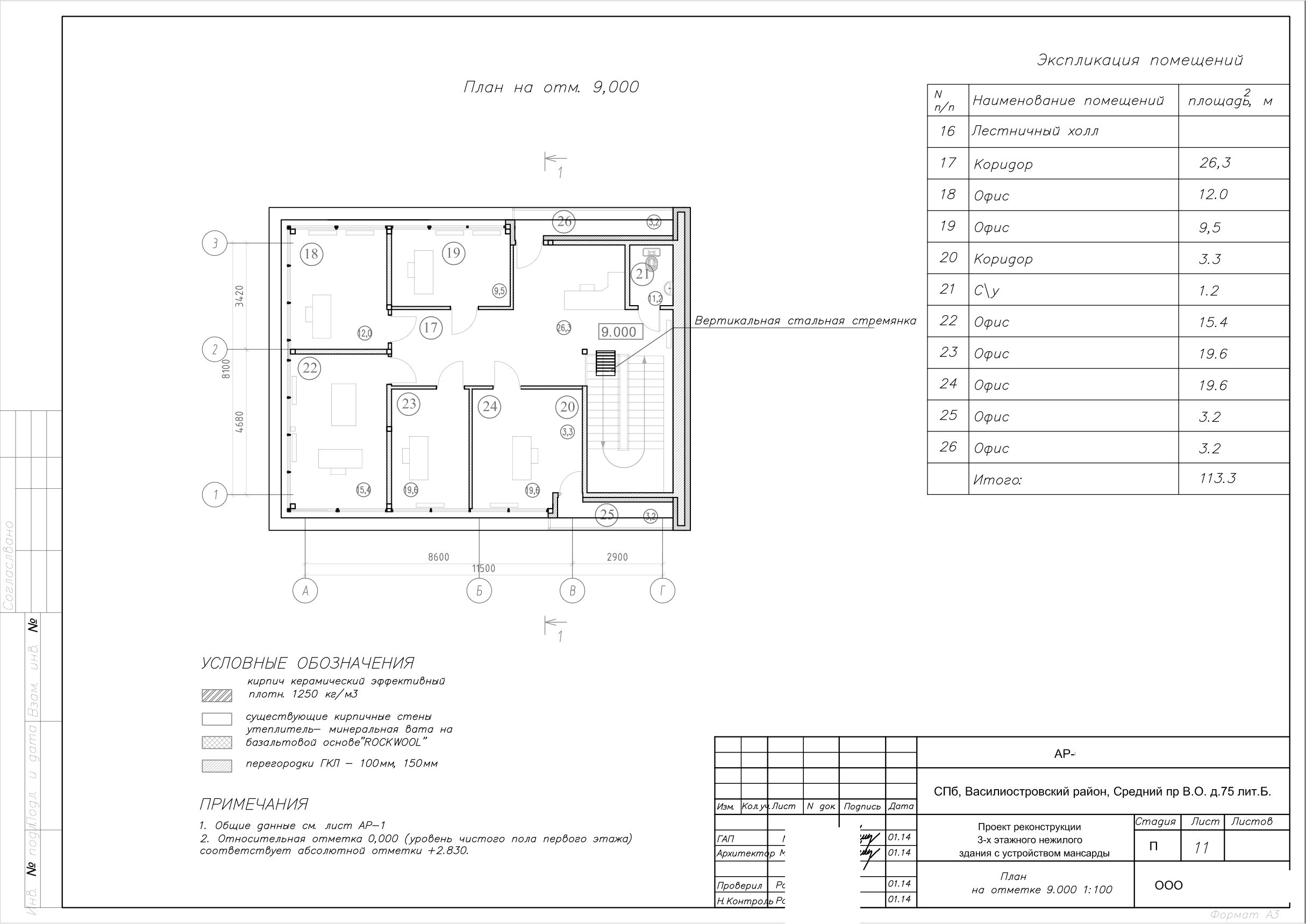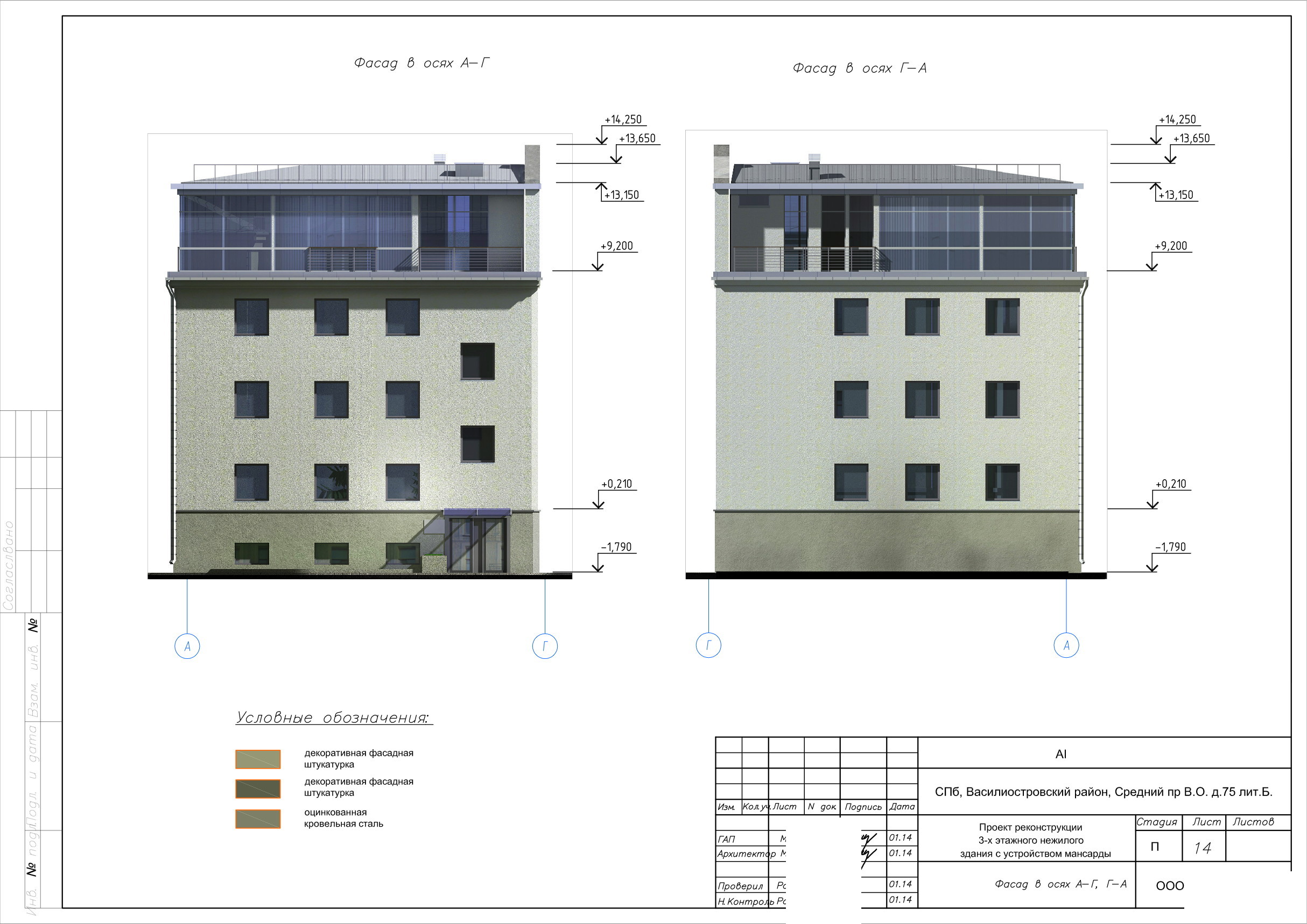 Реконструкция 3-х этажного нежилого здания с устройством мансарды на земельном участке площадью 125 м2 на Среднем проспекте В.О.