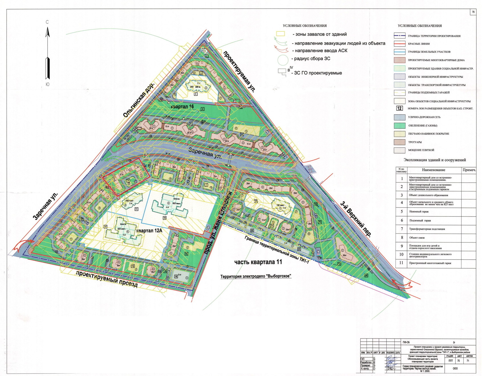 Жилые секции расположены фронтом вдоль Заречной улицы и внутриквартального проезда по западной границе участка.