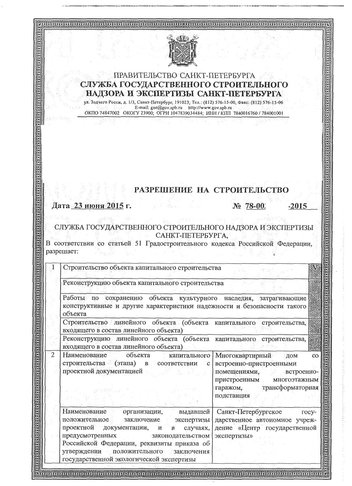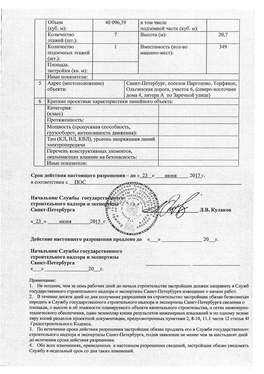 - разрешения на строительство от 23 июня 2015 г.