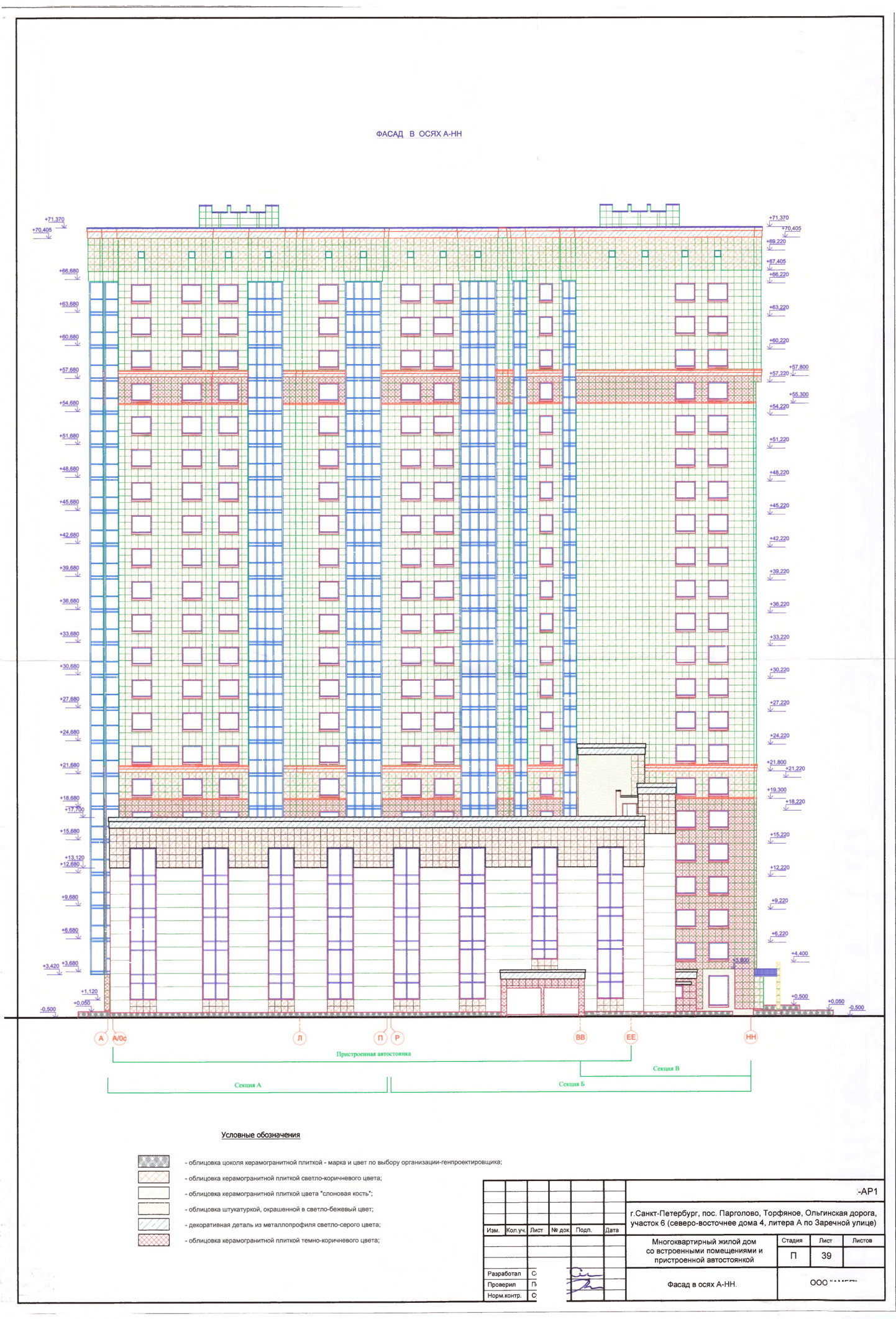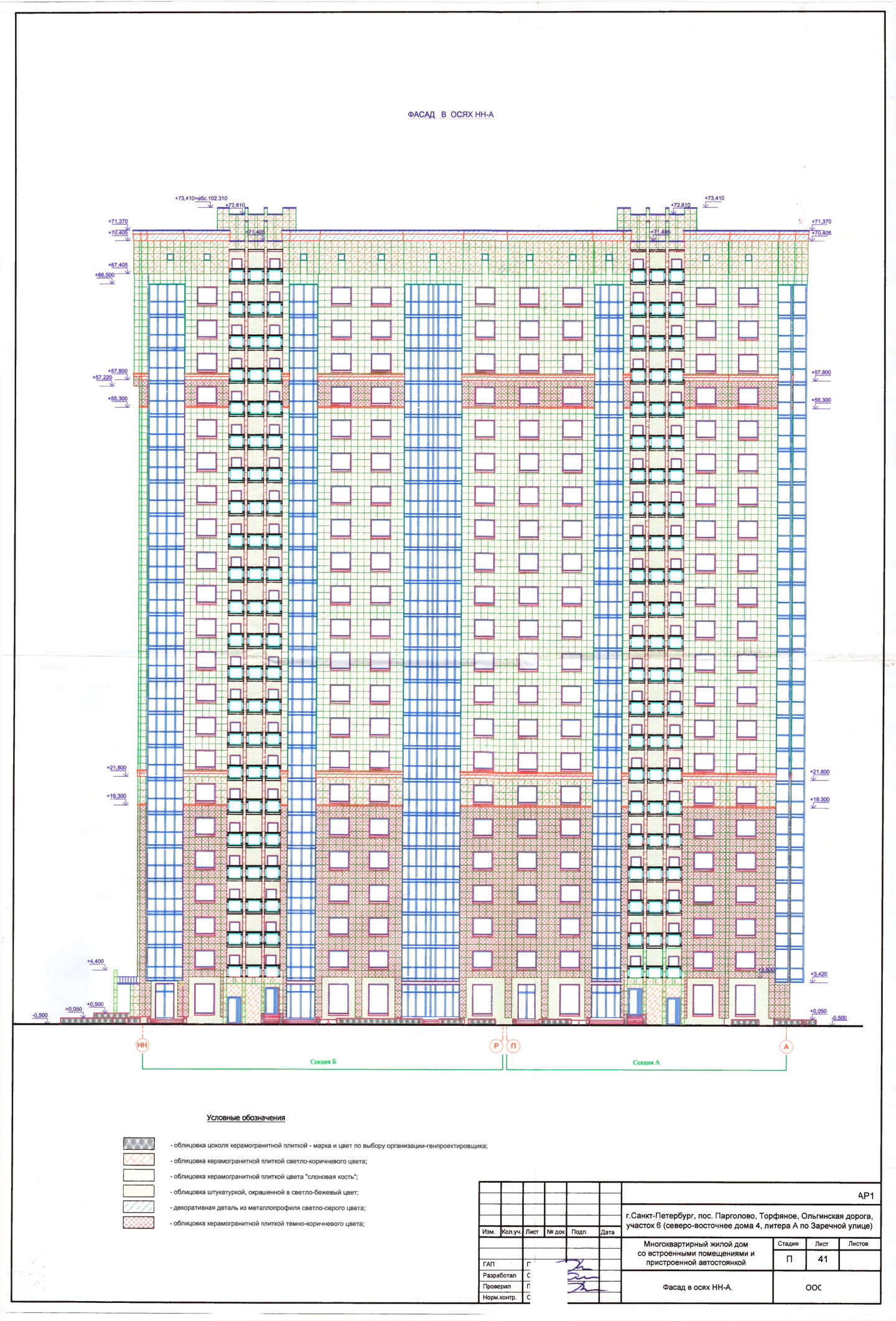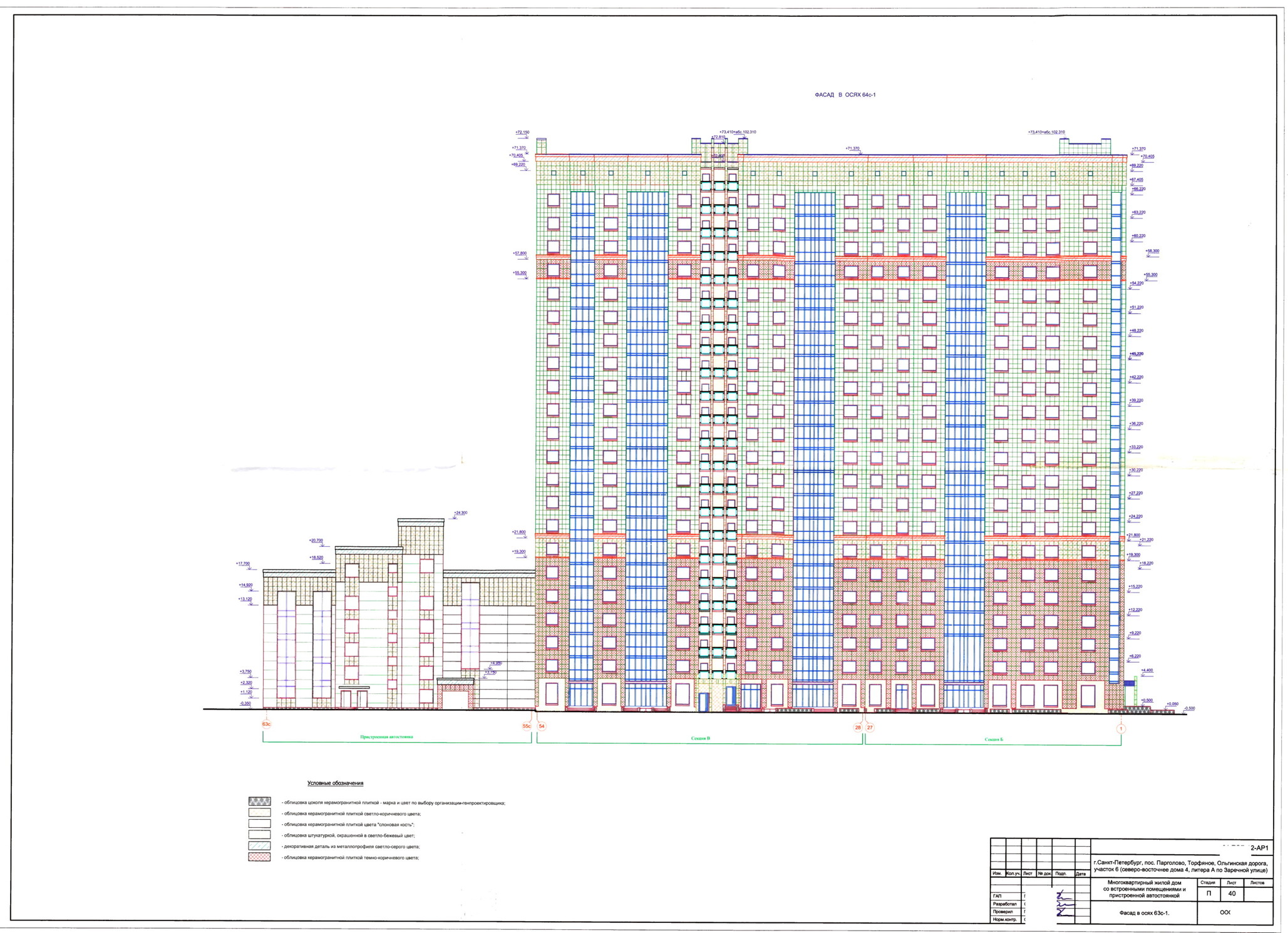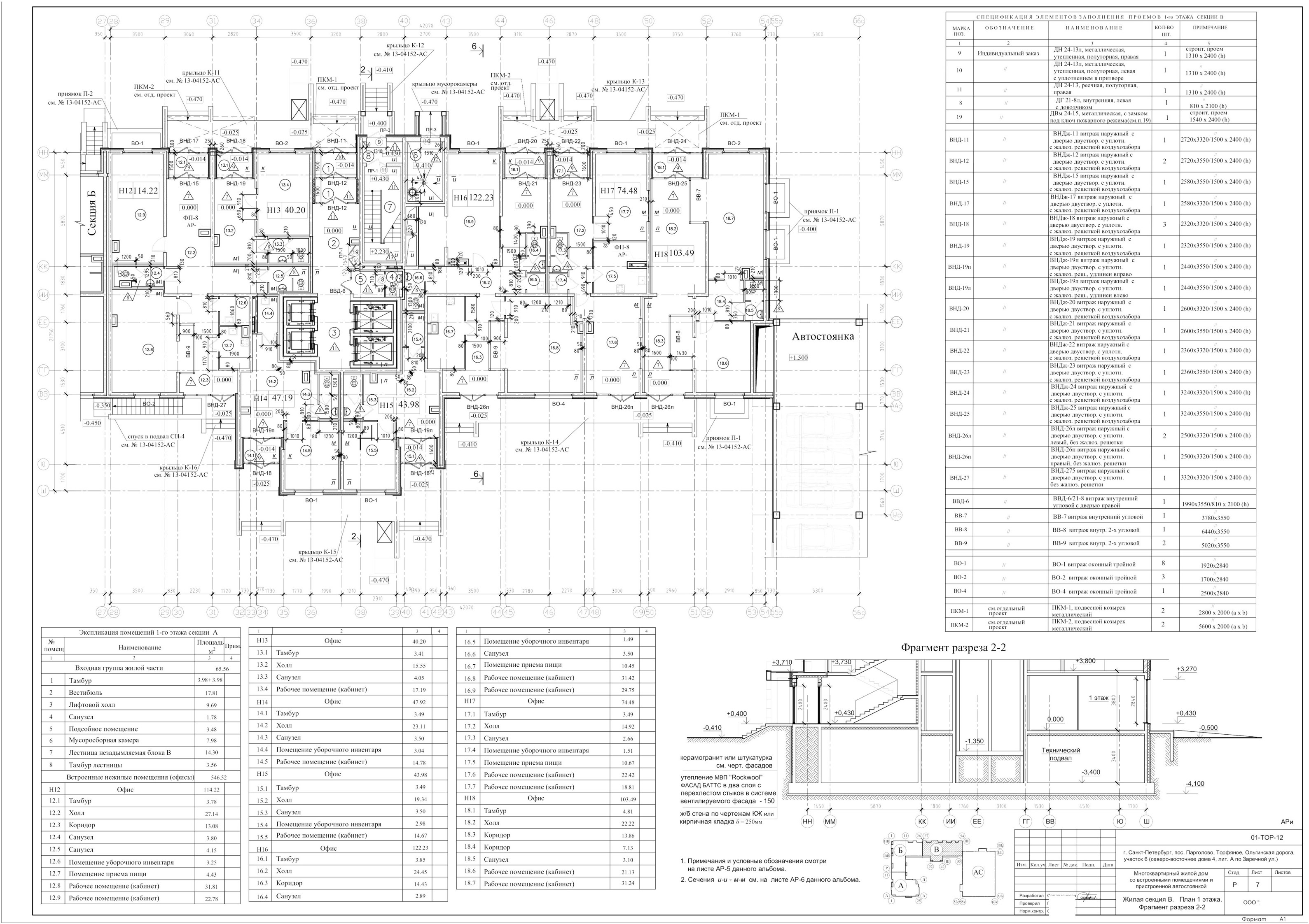 Жилые секции запроектированы в 22 и 23 этажах с техническим подвалом и техническим чердаком.