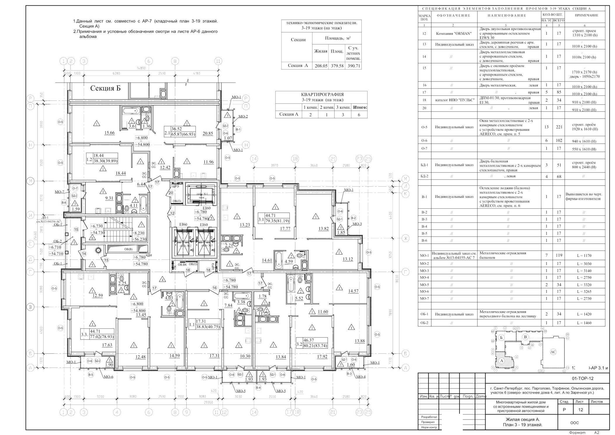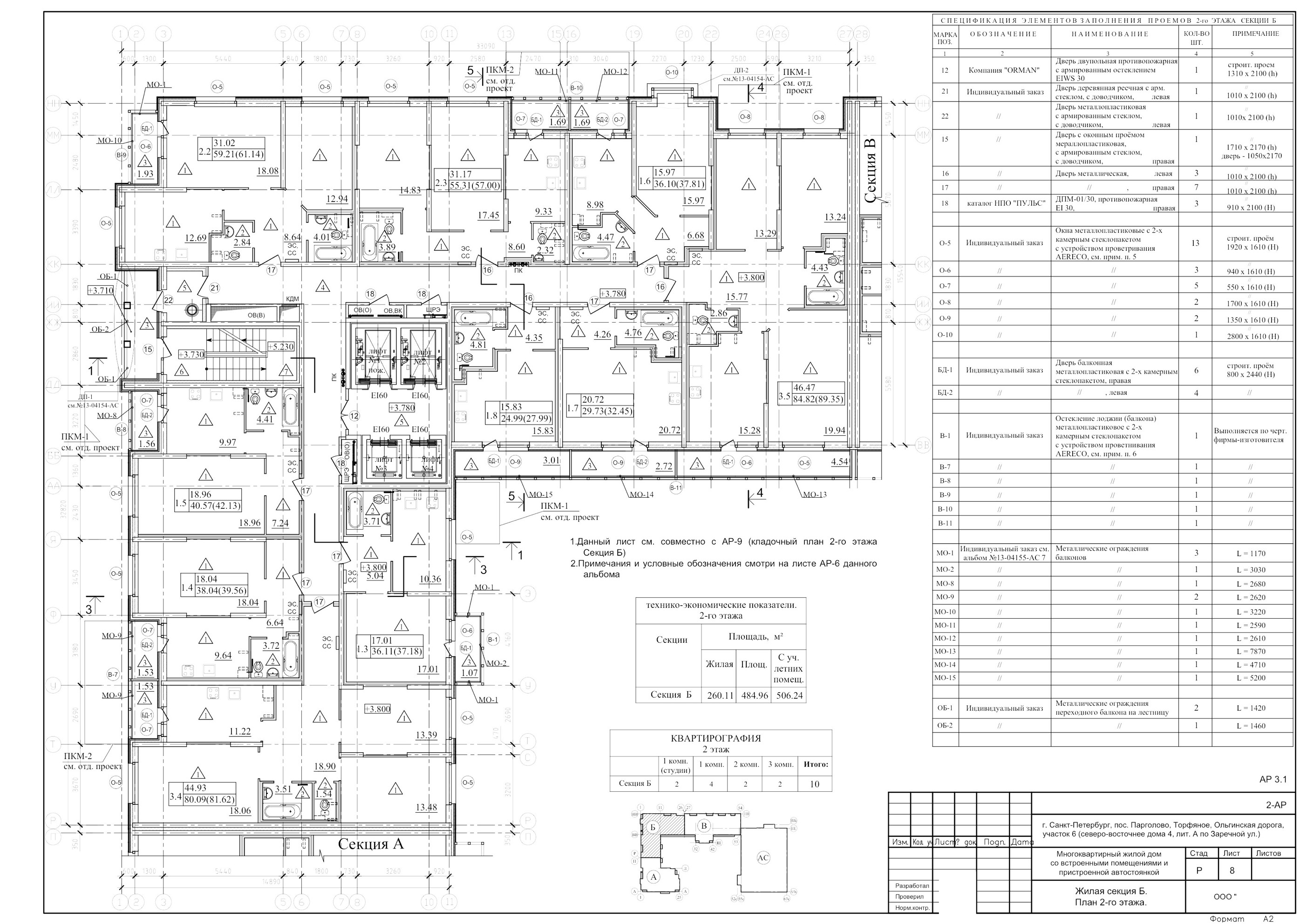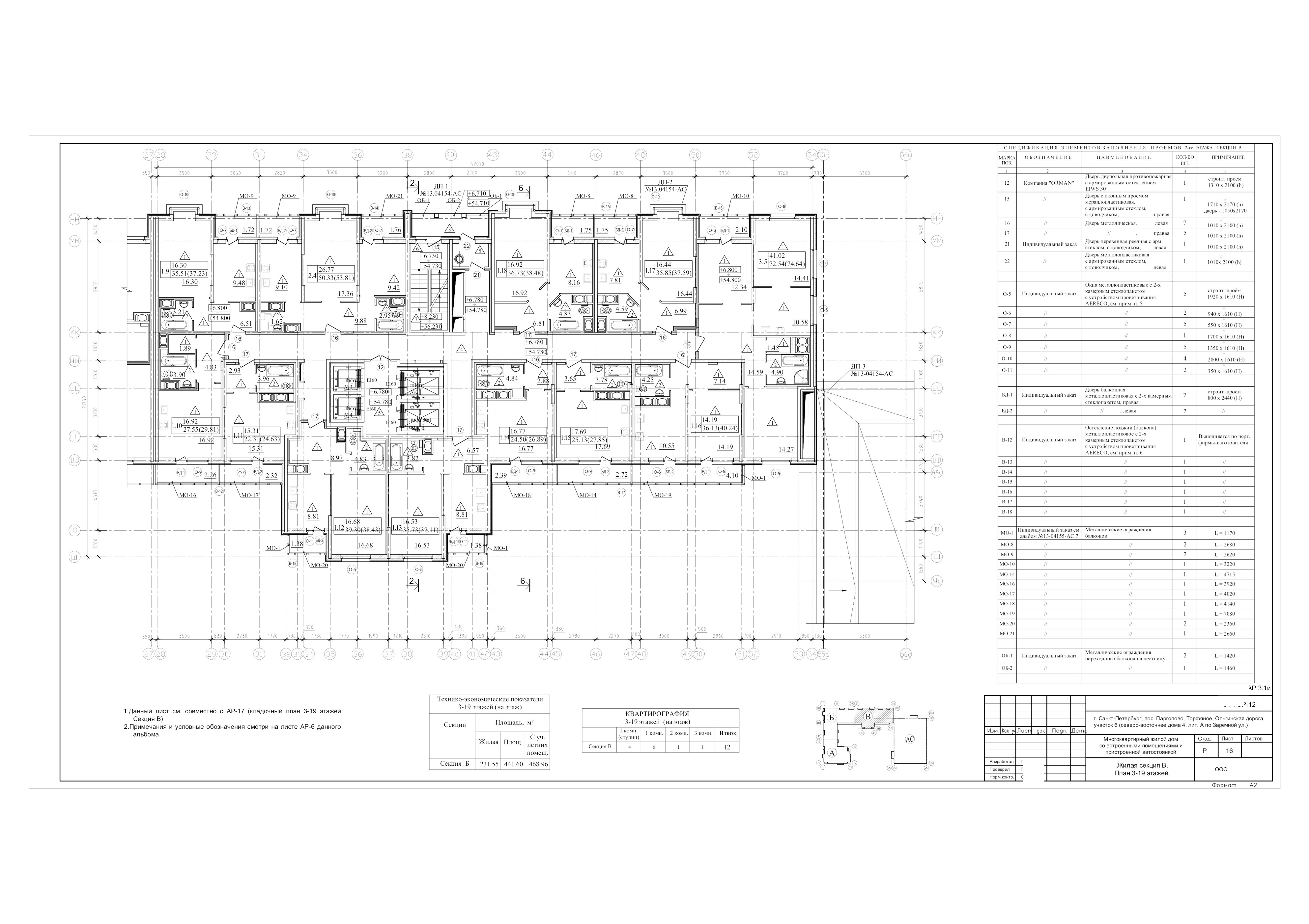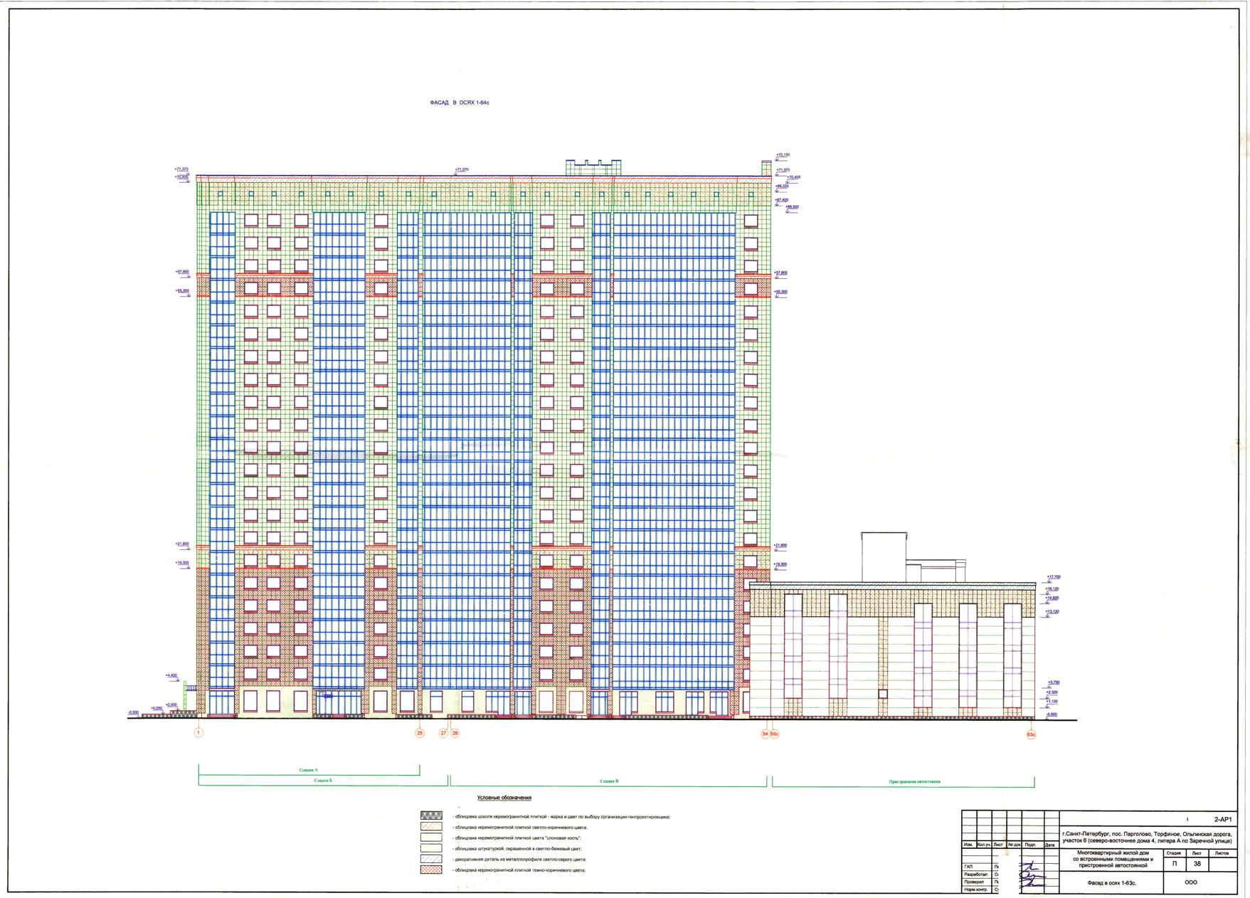 Жилые секции запроектированы в 22 и 23 этажах с техническим подвалом и техническим чердаком.