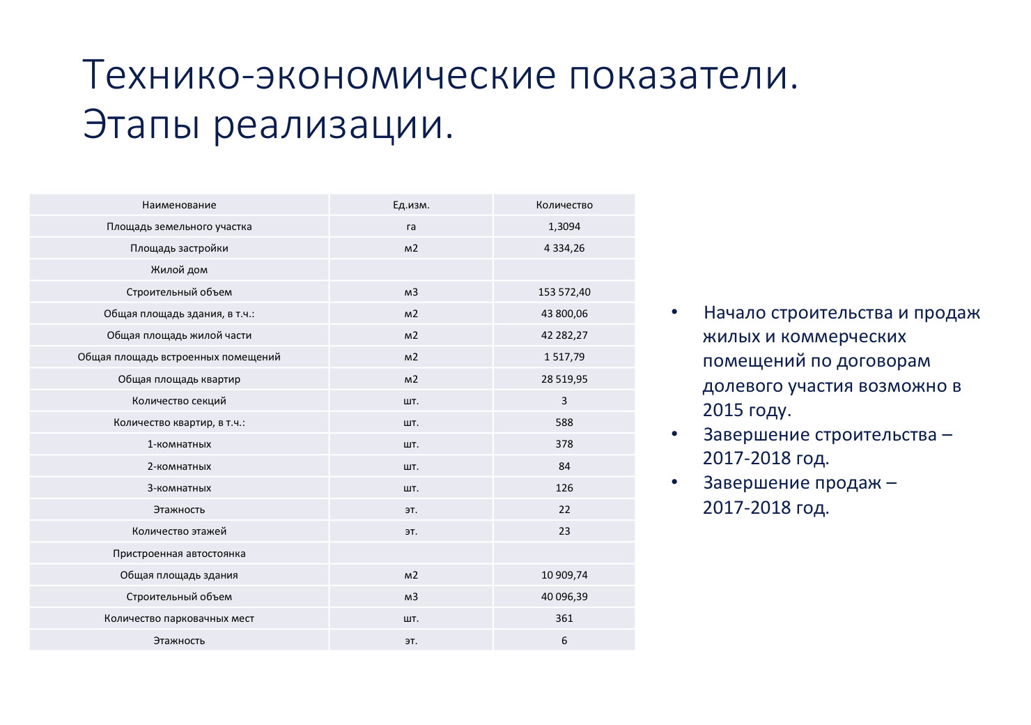 Начало строительства и продаж жилых и коммерческих помещений по договорам долевого участия возможно в 2015 году.