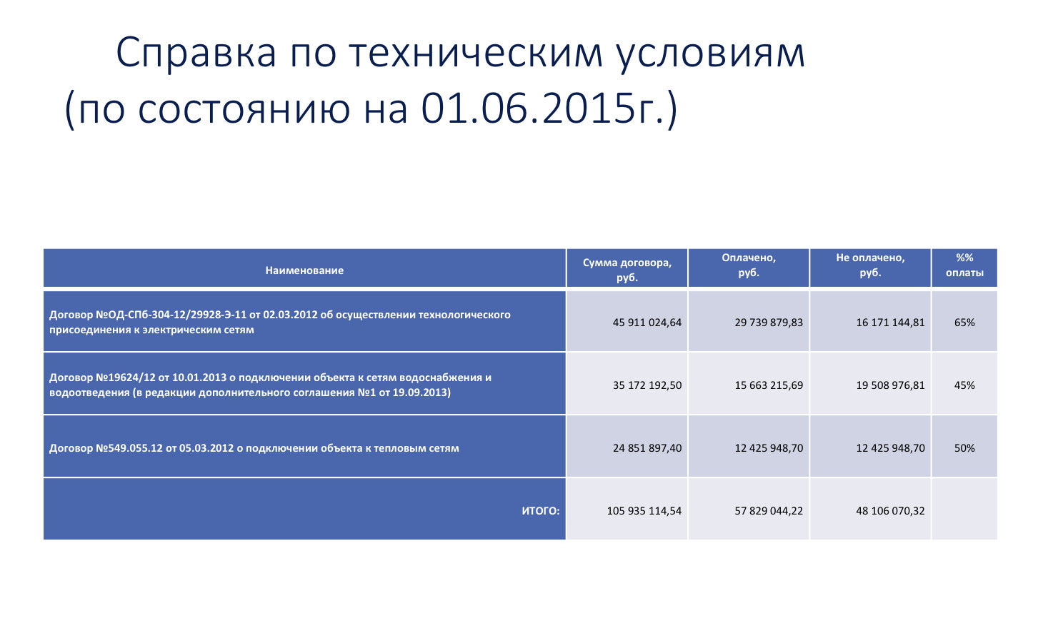 - технических условий и заключенных договоров на технологическое присоединение.
