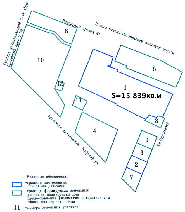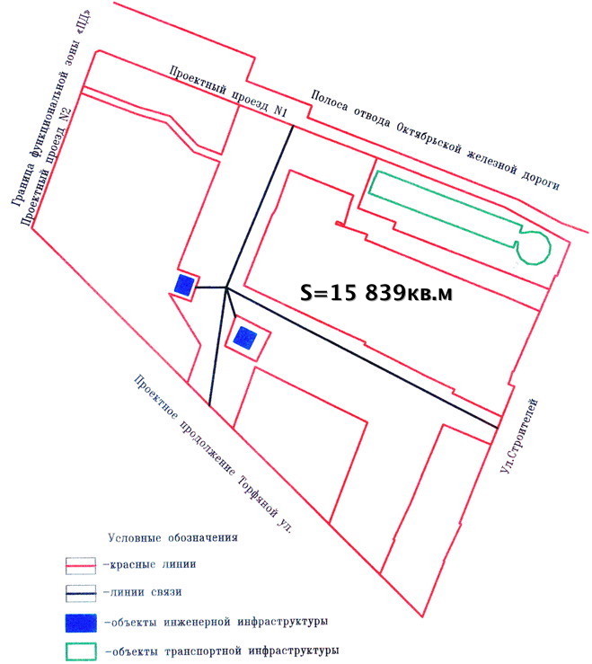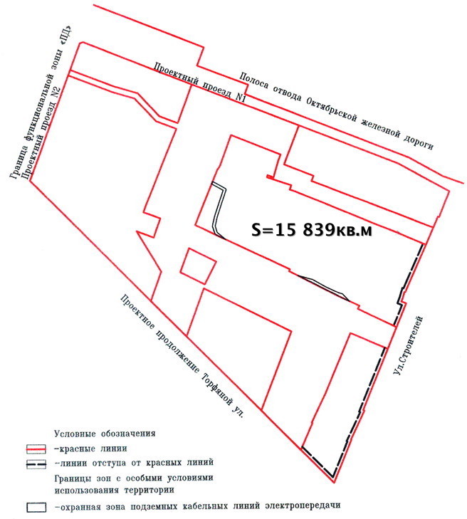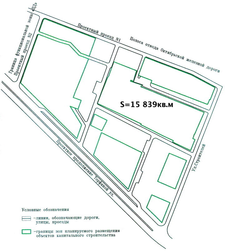 Границами проекта квартальной планировки с проектом межевания территории, ограниченной ул.Строителей, проектным продолжением Торфяной ул., границей функциональной зоны "ПД", полосой отвода Октябрьской железной дороги в г.Зеленогорске, являются: