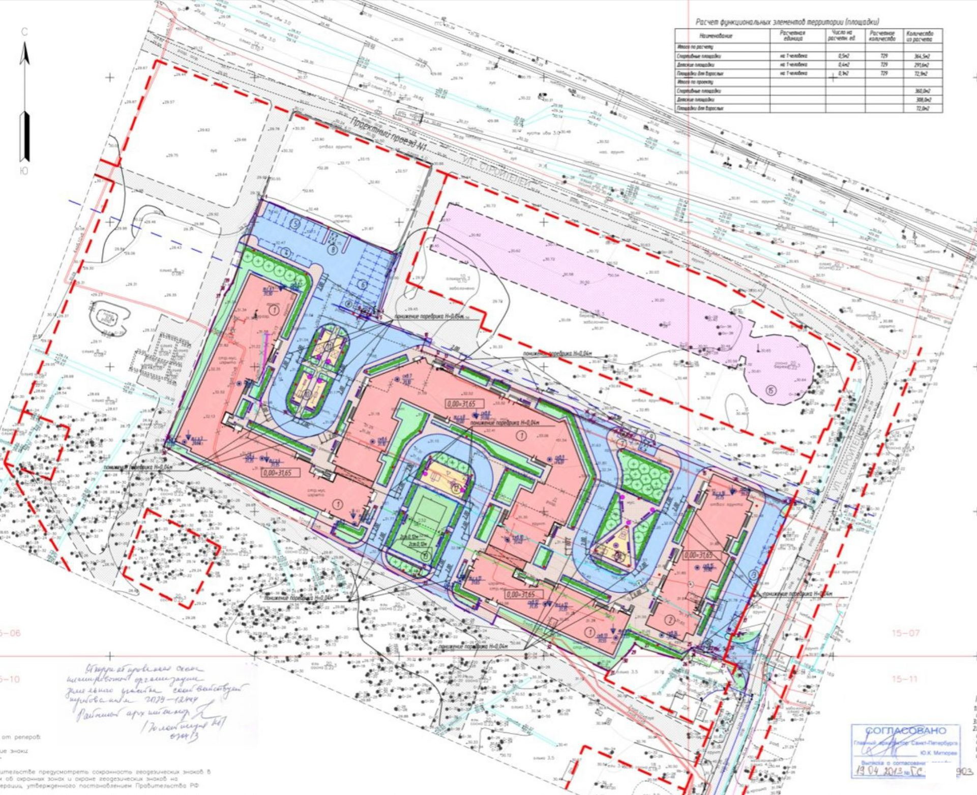 Постановлением Правительства Санкт-Петербурга от 28.06.2011 г. утверждён проект планировки и межевания квартала:
