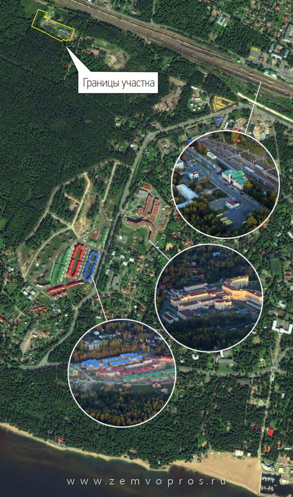 - Участок расположен на северо-западе г. Зеленогорска, в зелёной зоне.
