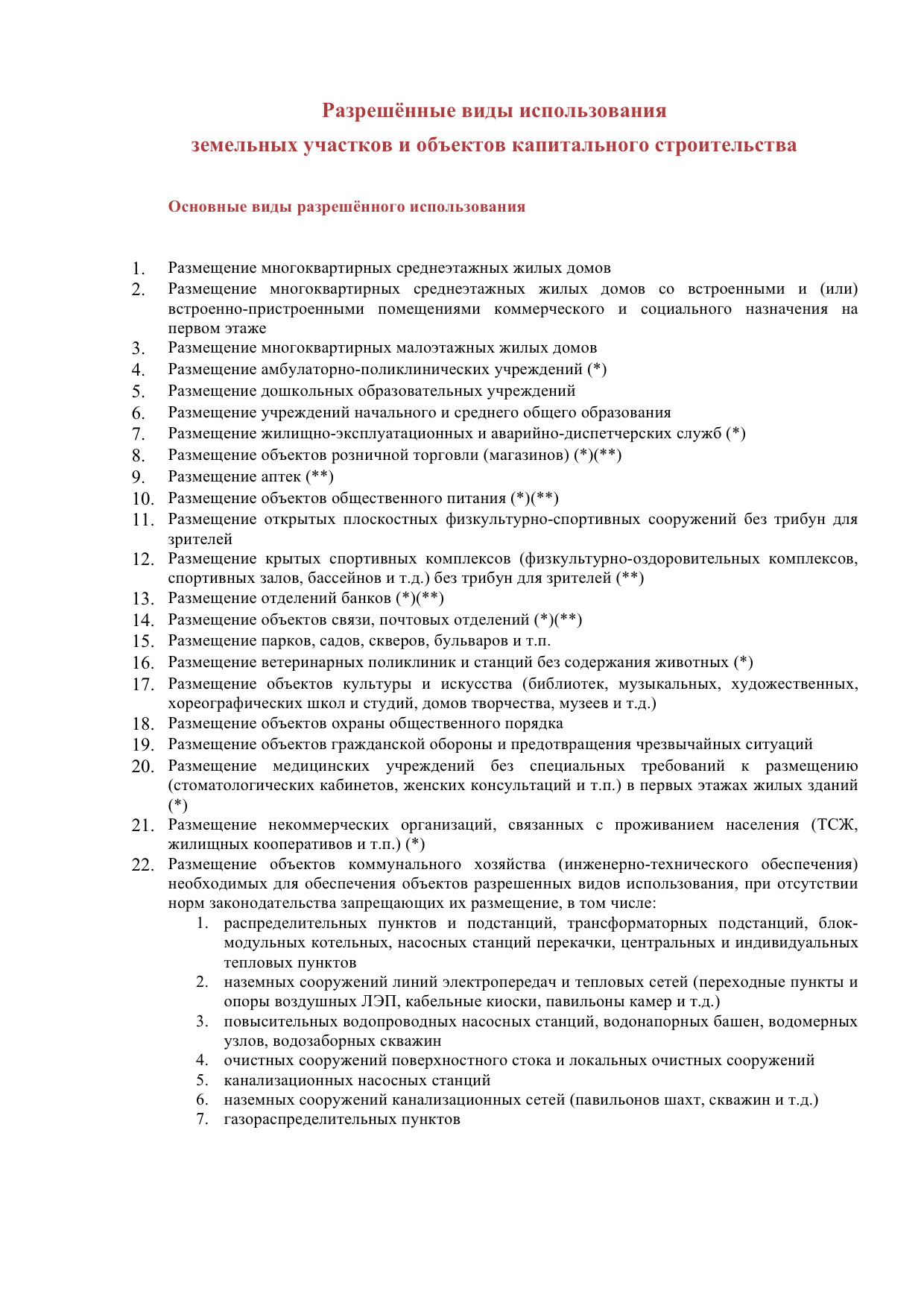 - обеспечение правовых условий для размещения необходимых объектов инженерной и транспортной инфраструктур.