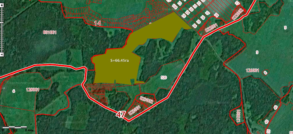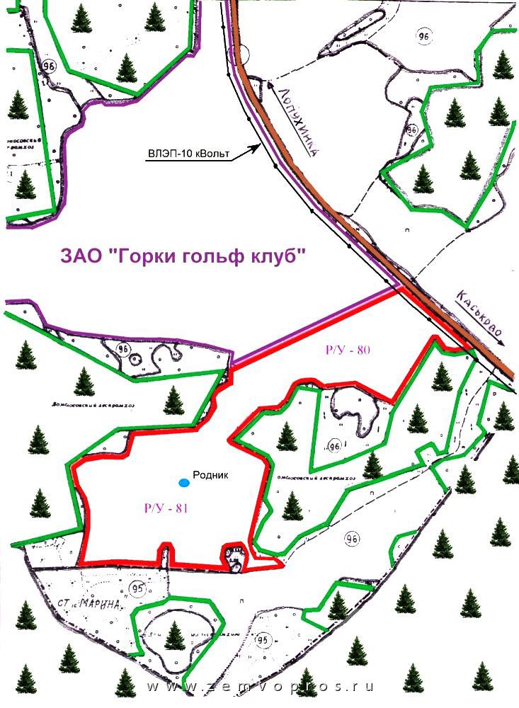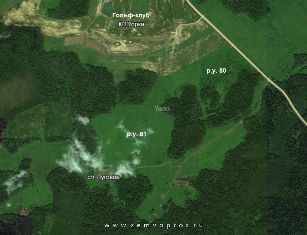 Земельный массив площадью 66.45 га для ведения КФХ, примыкающий к границе территории курортного комплекса «Горки Гольф Клуб» у деревни Горки.