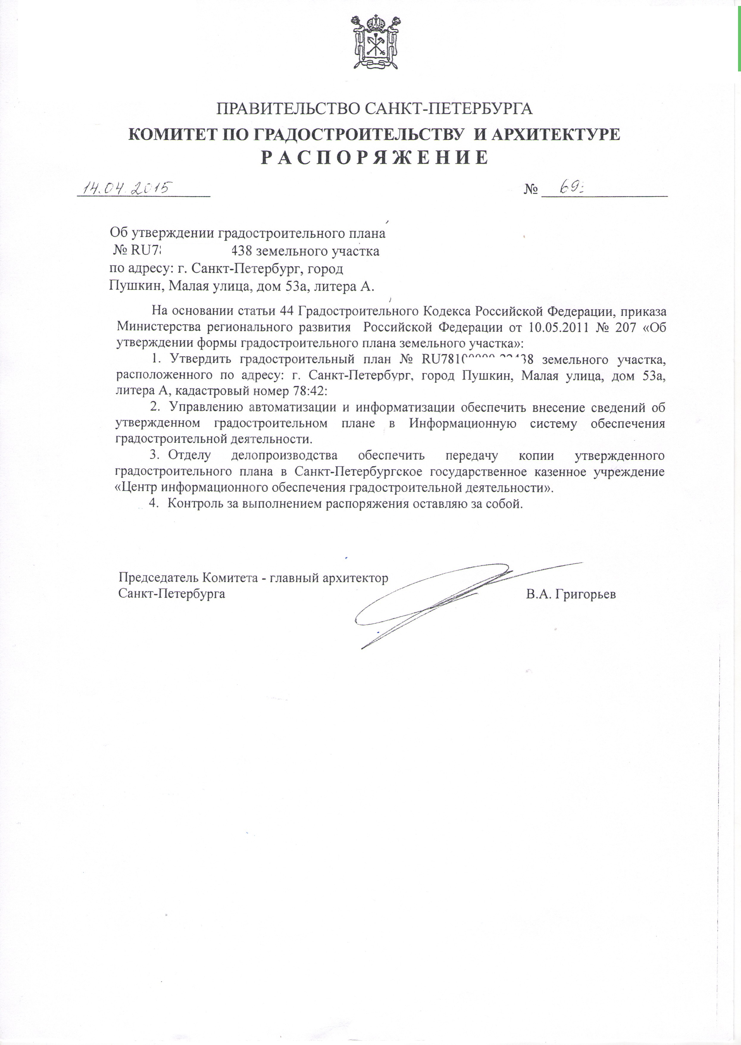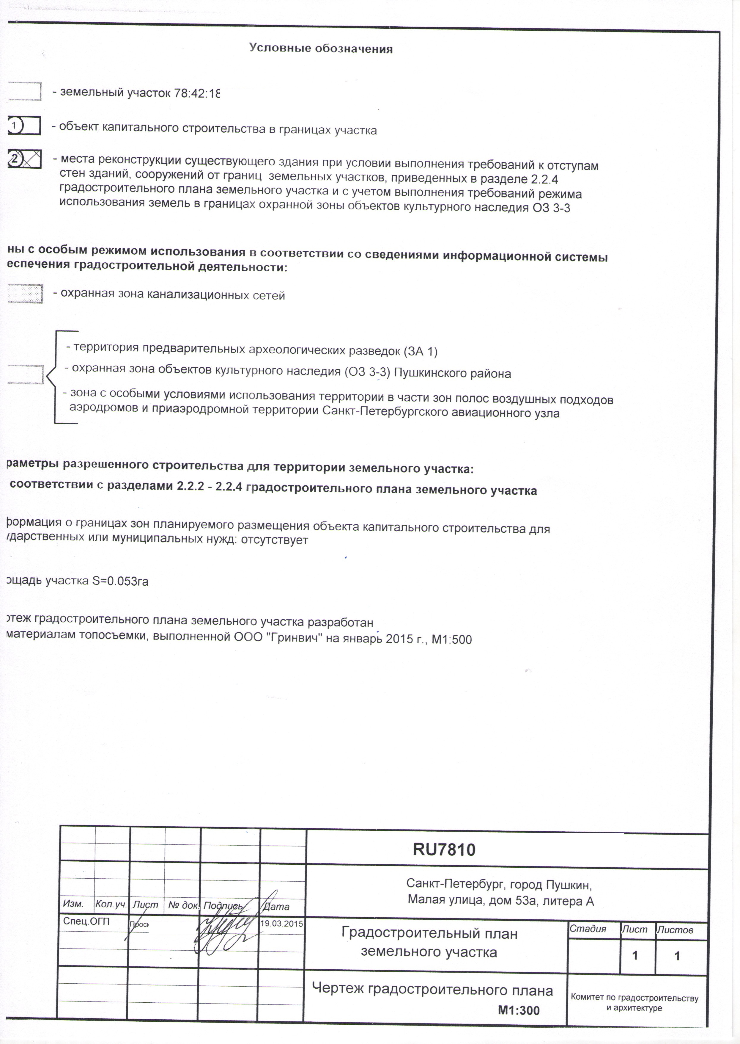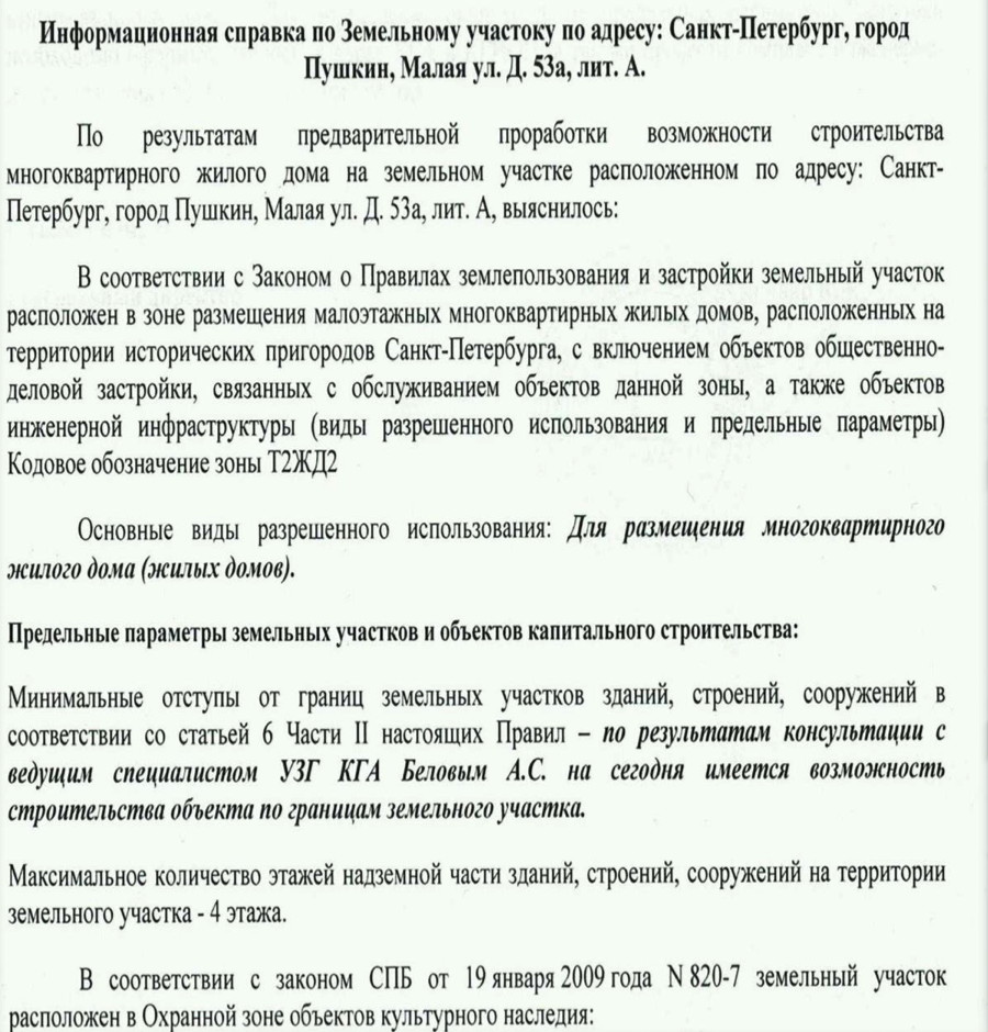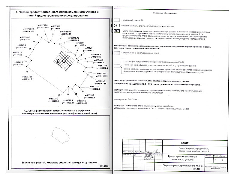 - Есть предварительное согласование, проведённое в 2015 году с архитектором Пушкинского района (экспертиза) по вопросу строительстве без отступа от границ участка.
