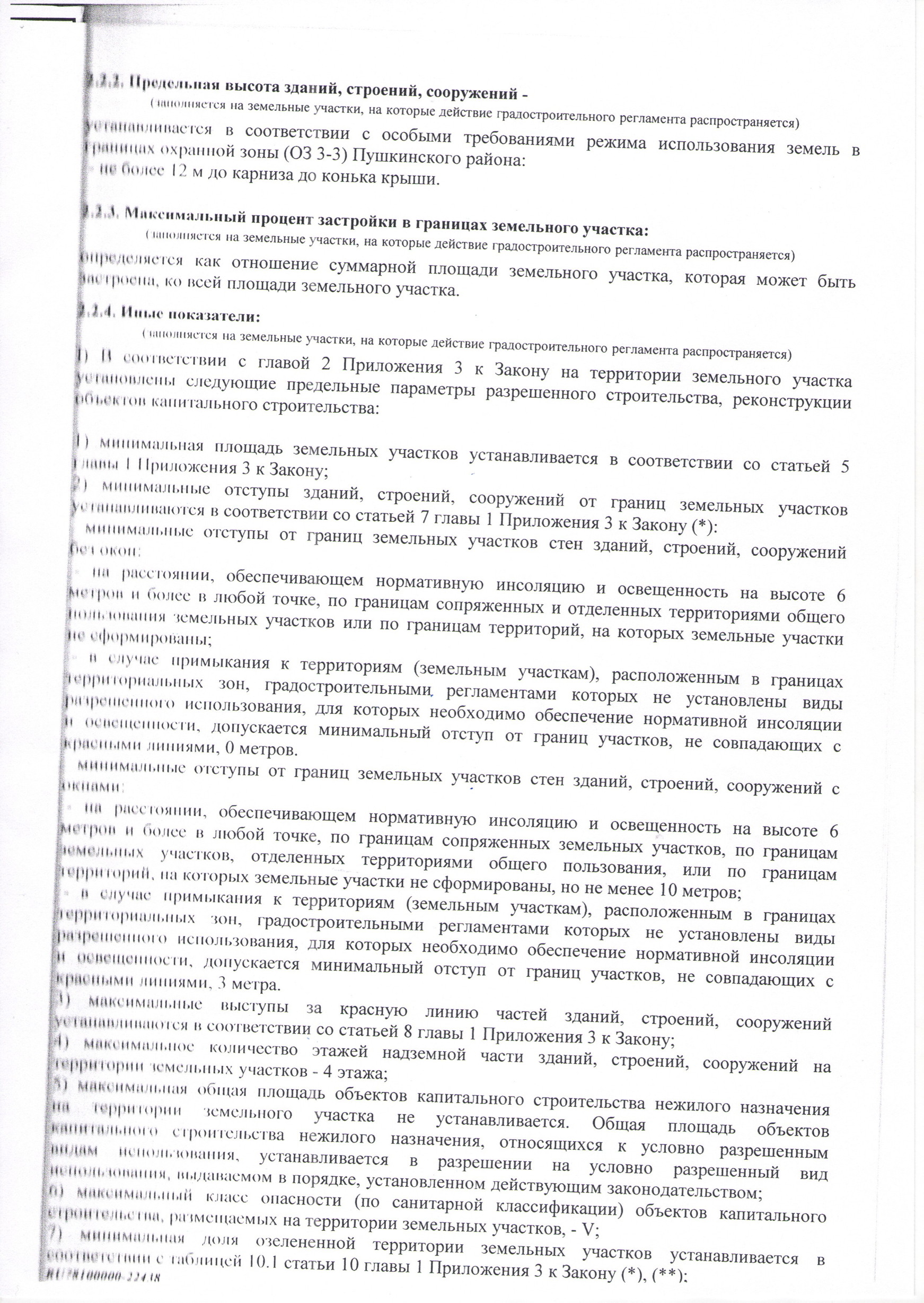 Предельные параметры земельных участков и объектов капитального строительства