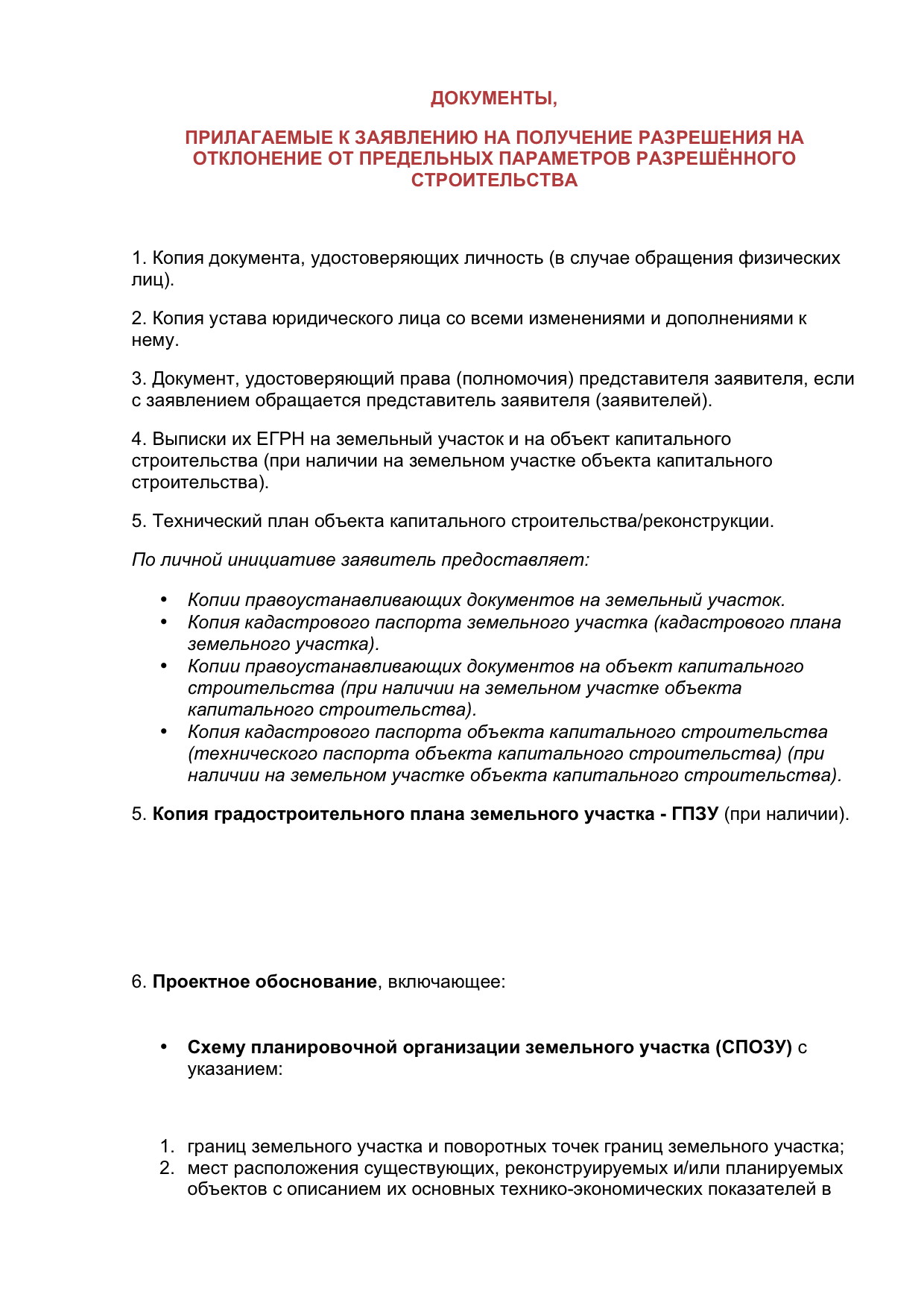 5. Порядок получения разрешения на отклонение от предельных параметров разрешённого строительства