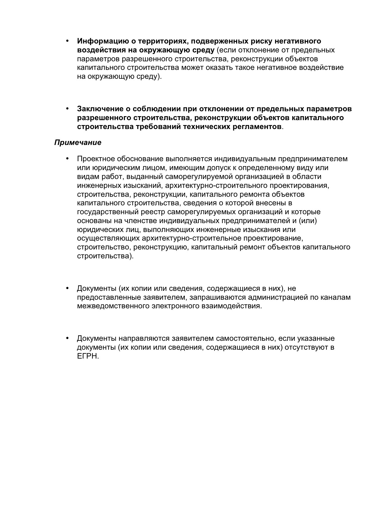 - заключение о соблюдении требований технических регламентов для ОКС при реализации разрешения на отклонение от предельных параметров разрешённого строительства/реконструкции ОКС