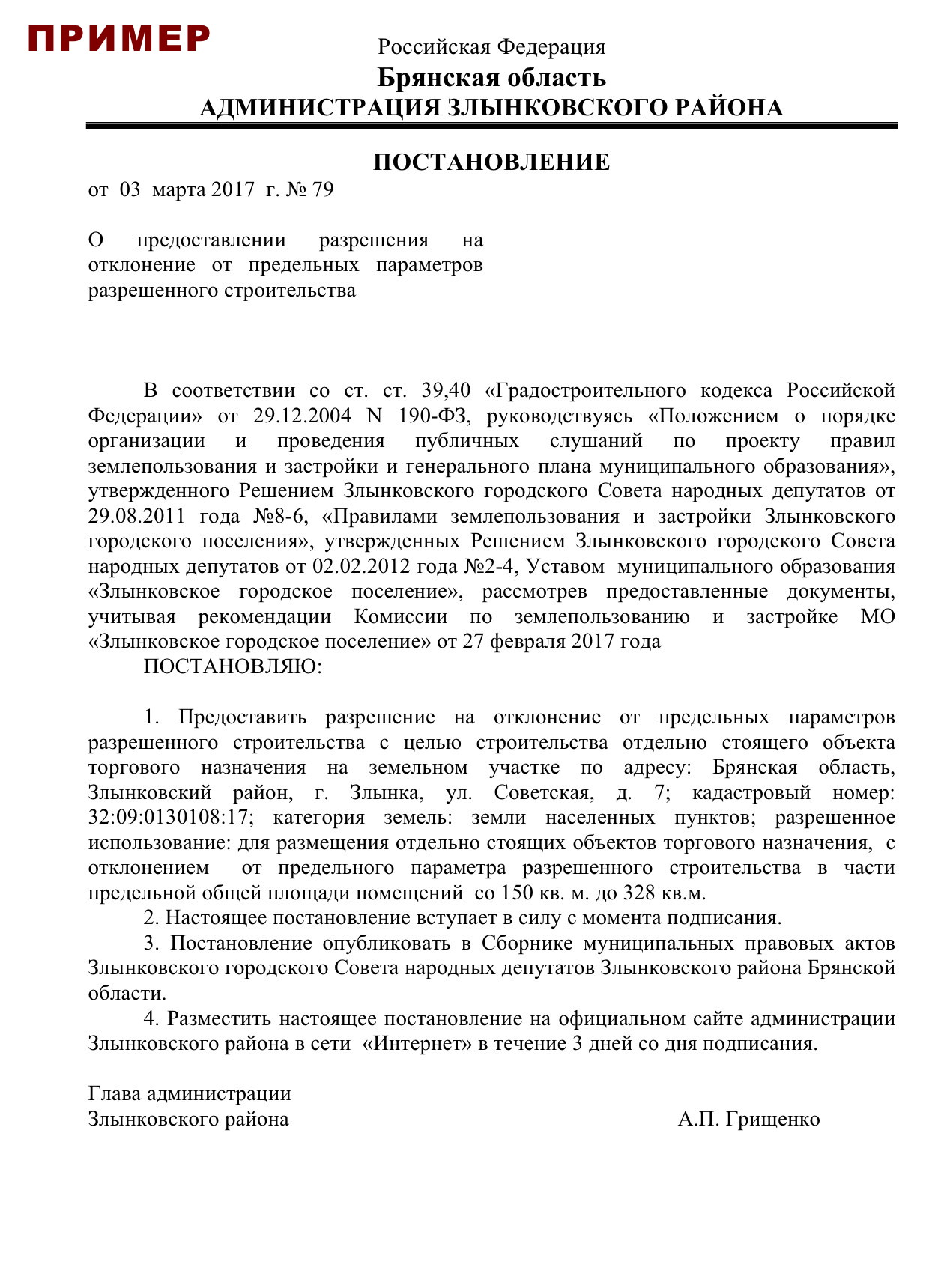 - Порядок получения разрешения на отклонение от предельных параметров разрешённого строительства