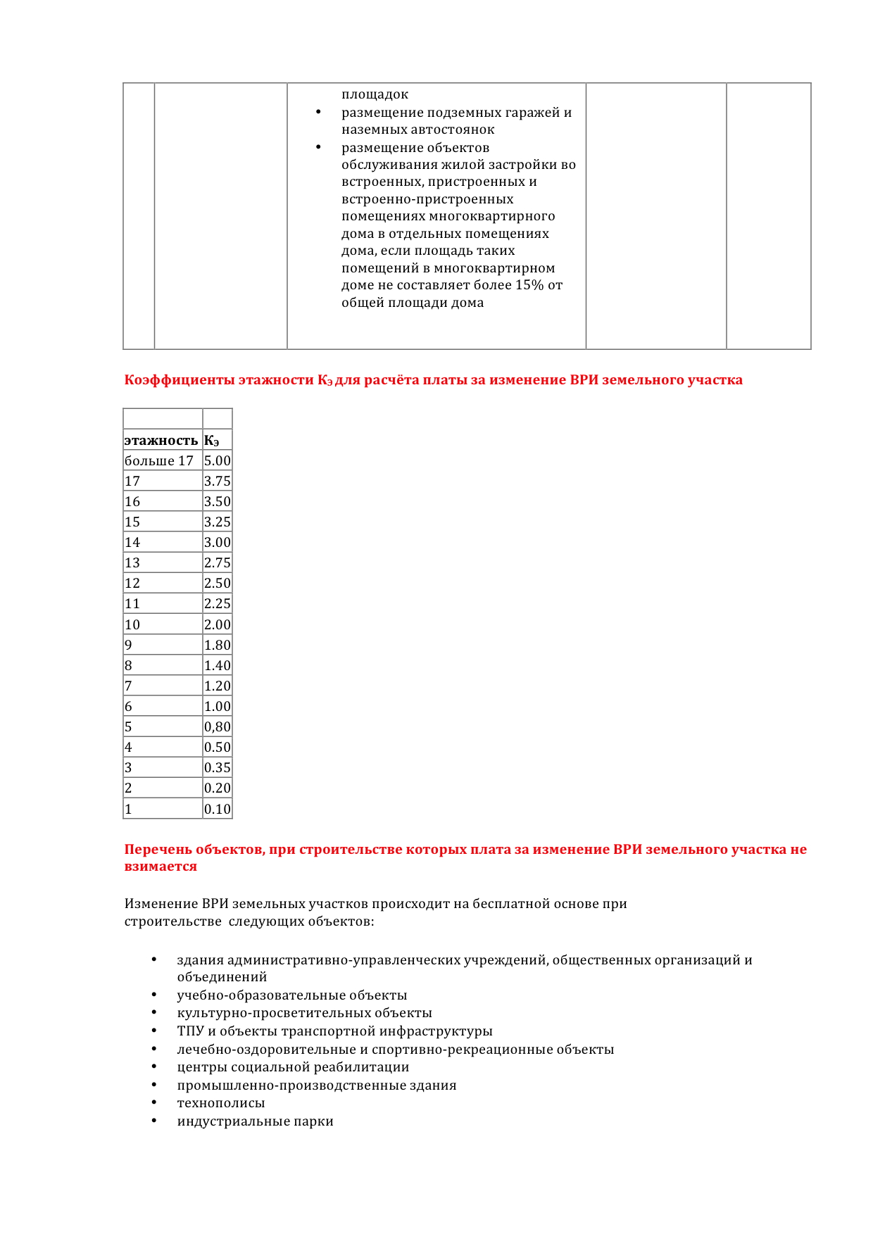 - Коэффициенты этажности КЭ для расчёта платы за изменение ВРИ земельного участка