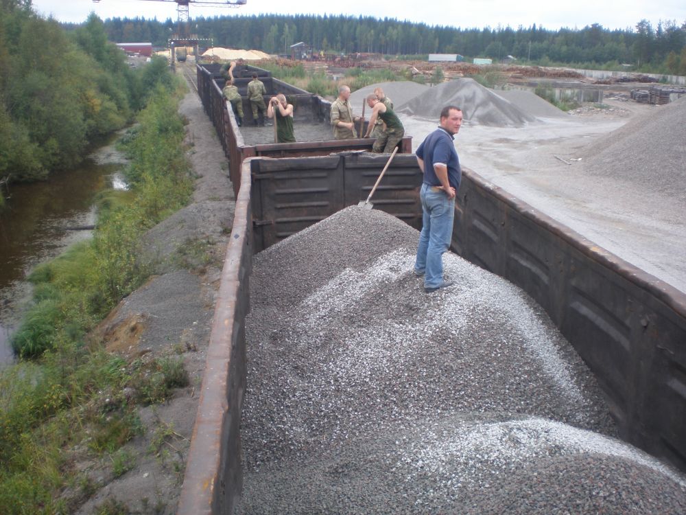 От промплощадки с дробильно-сортировочным заводом до ж.д.станции Суоярви расстояние - 4,5 км. В настоящее время пока не завершено строительство собственного ж.д.тупика (от завода до станции) отгрузка товарной продукции осуществляется непосредственно с ж.д.станции Суоярви.