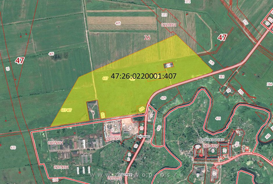 Три земельных участка производственного назначения площадью от 50 до 100 га для размещения объектов 2 – 5 классов санитарной опасности вблизи посёлка Ям-Ижора.