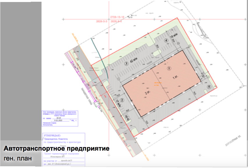 Участок со зданием автосалона, с генпланом территории и проектом АТП, на Парашютной улице
