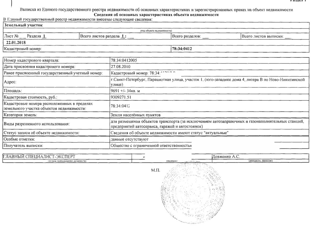 Земельный участок площадью 9691 м2 со зданием автосалона, с проектами территории и АТП на Парашютной улице.