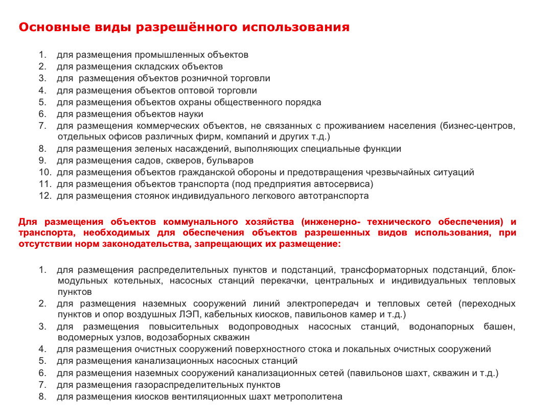 - Расположение участка в территориальной подзоне ТПД1_3 обеспечивает возможность размещения на нём объектов 4 – 5 классов санитарной опасности (производственных и складских комплексов)