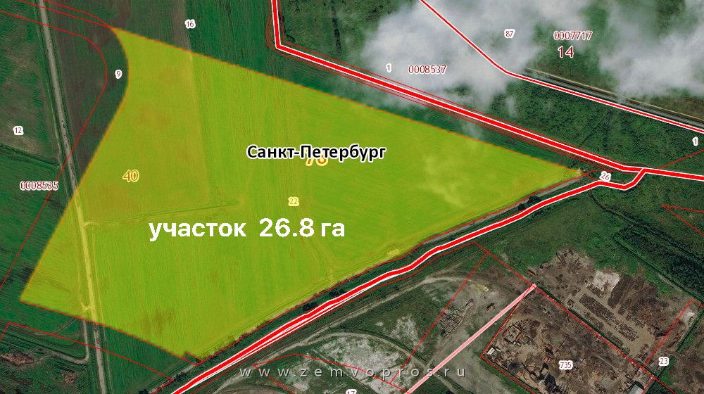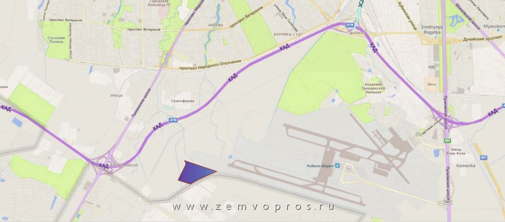 Земельный участок площадью 26.8 га в территориальной зоне объектов производственного и складского назначения на Таллиннском шоссе вблизи аэропорта Пулково в посёлке Старо-Паново.