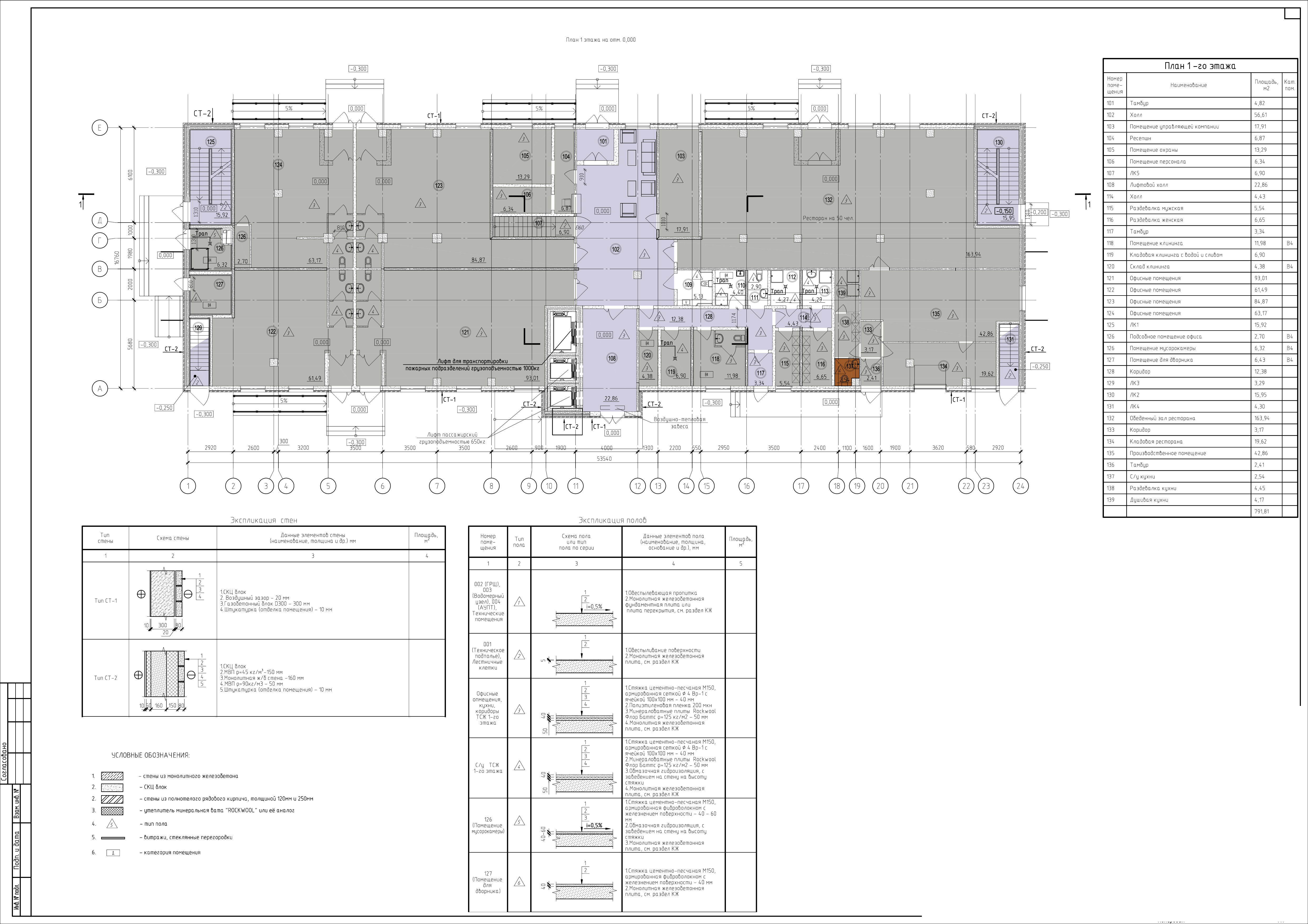 - Основная схема планировочных решений гостиничной и офисной частей: