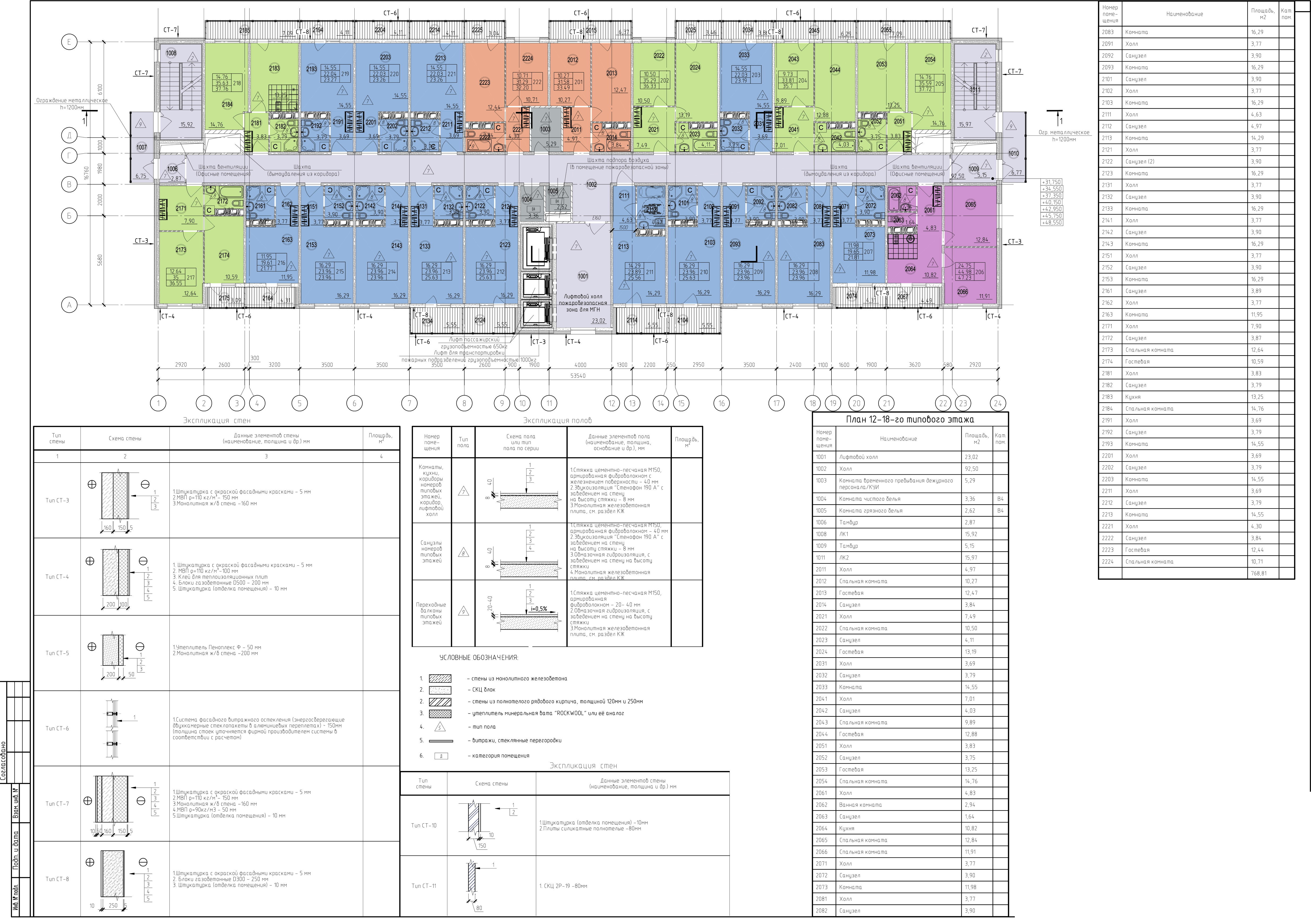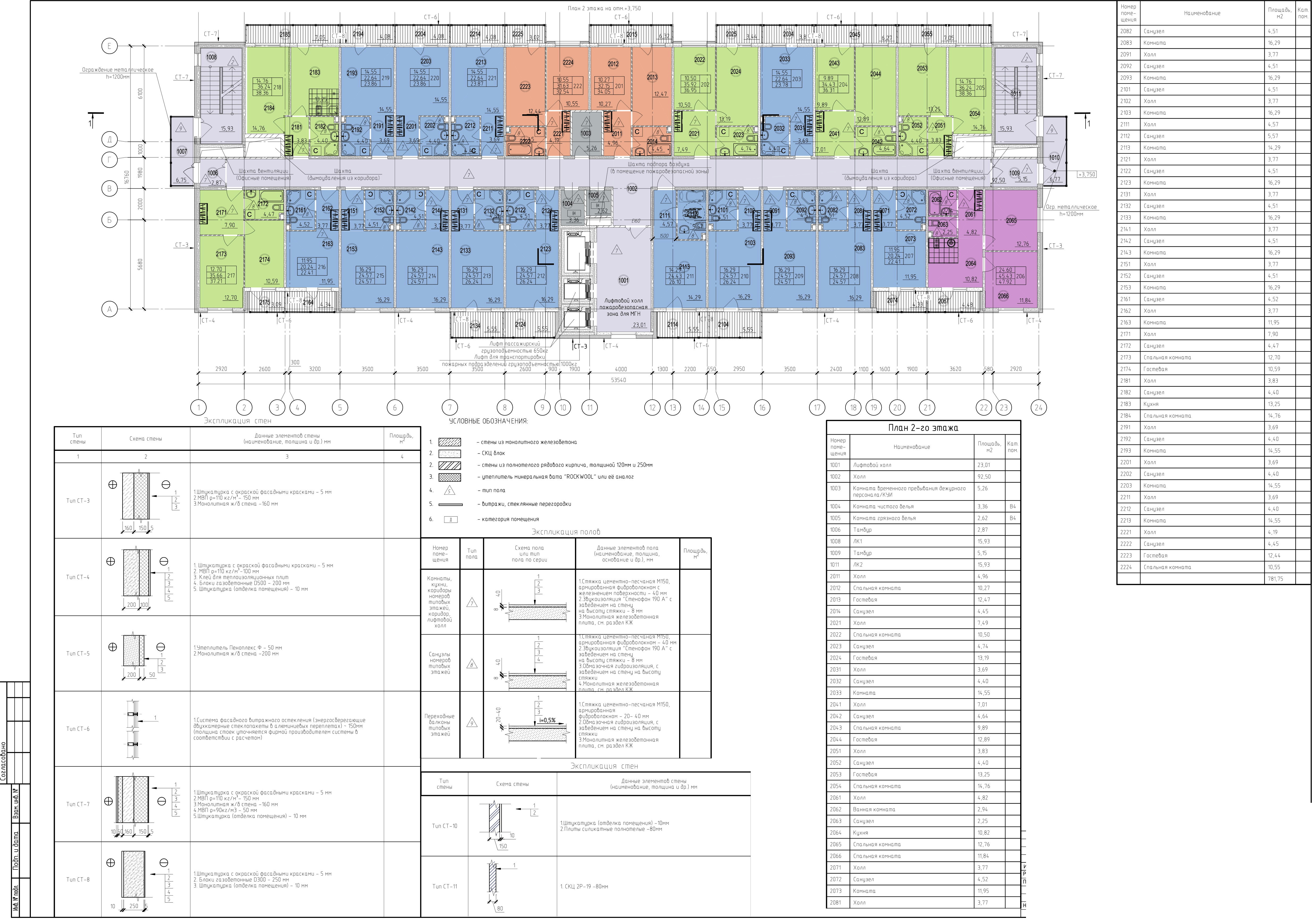 - высота помещений 2-18 этажа от уровня чистого пола до низа перекрытия - 2.57 м