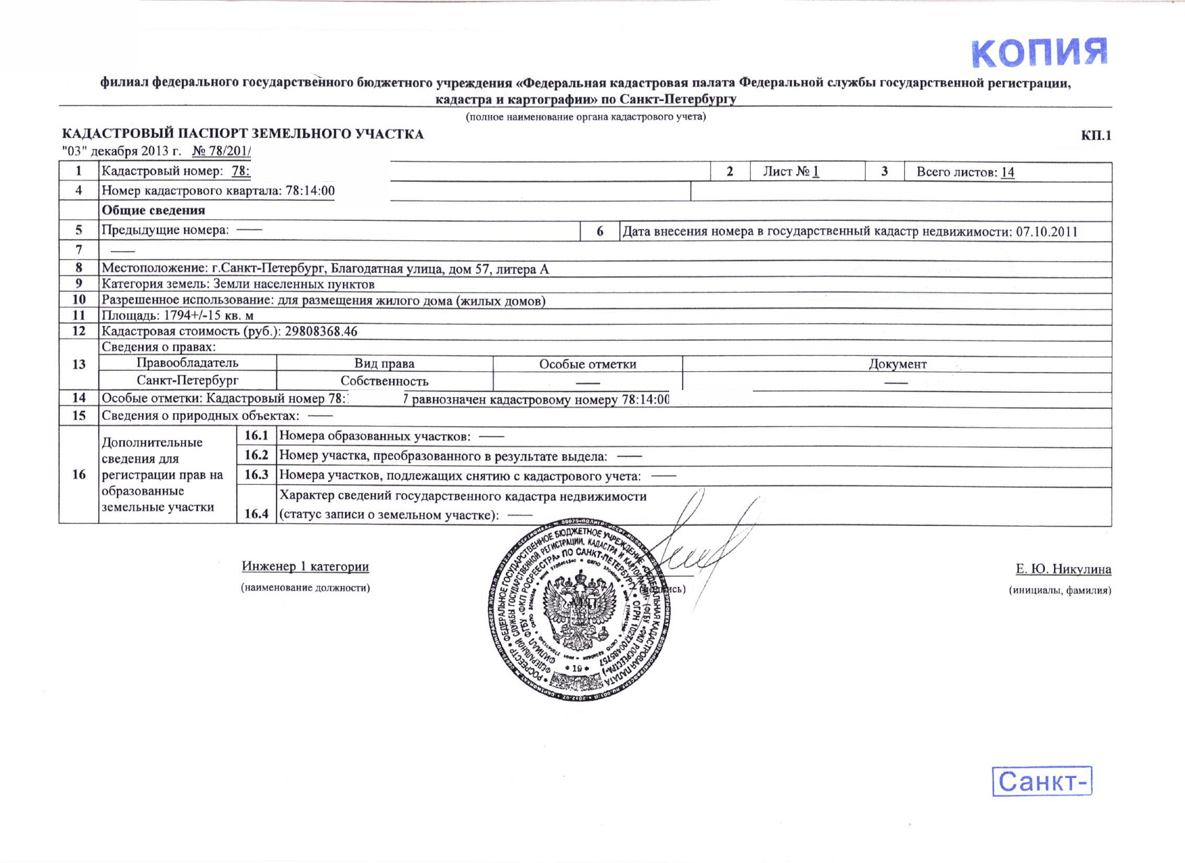 - ЗРЗ 3 1-1 Московского района Санкт-Петербурга - 1794 м2 (распространяется на весь земельный участок)
