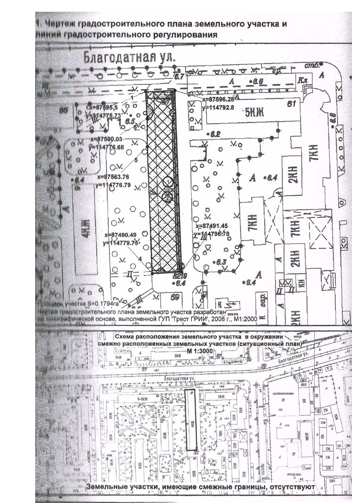 Земельный участок площадью 1794 м2 под строительство 10-этажного жилого дома с подземным паркингом на Благодатной улице.