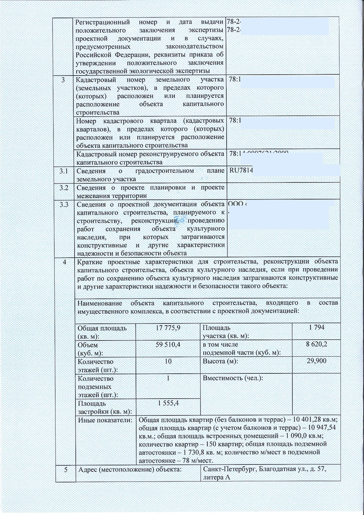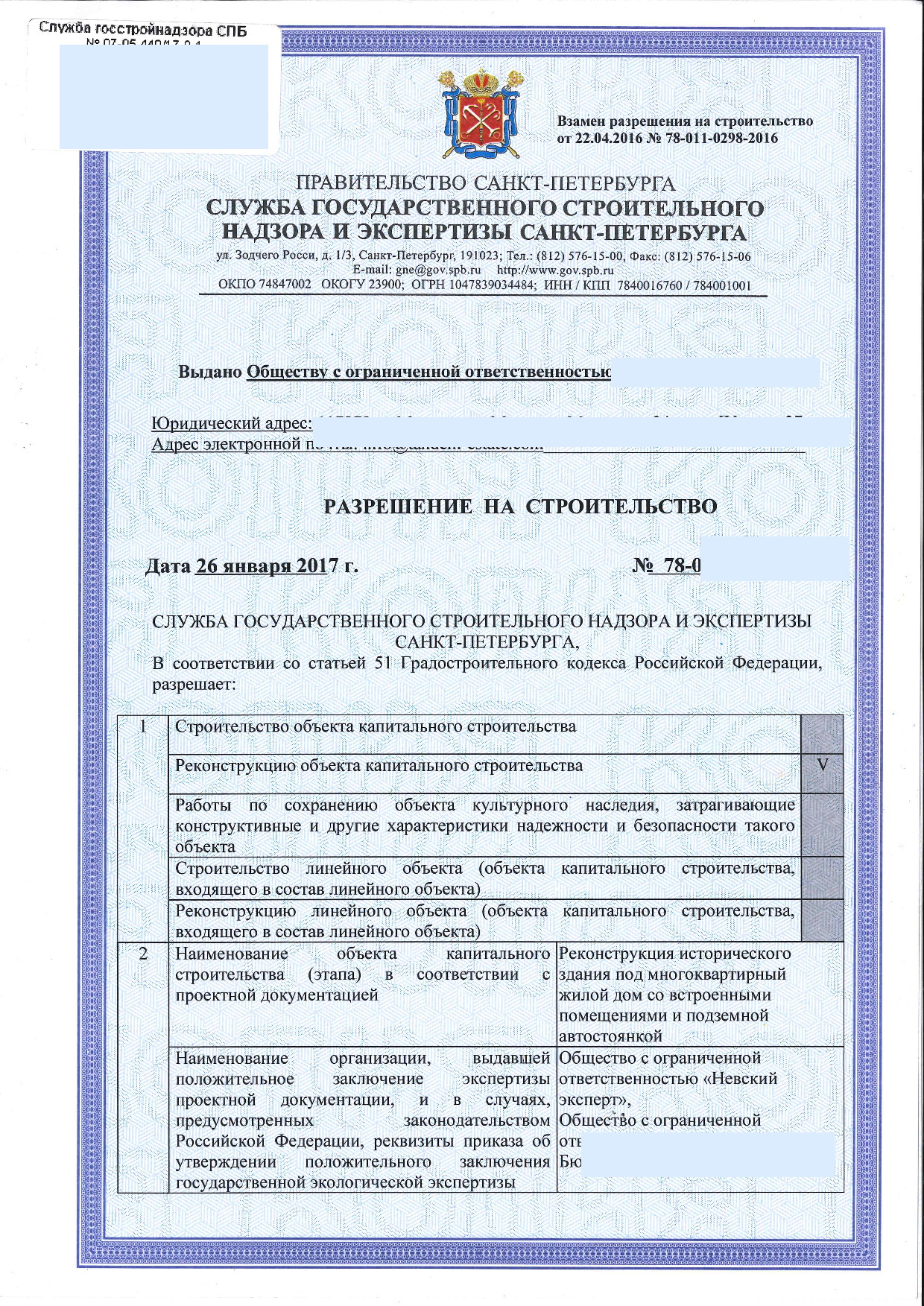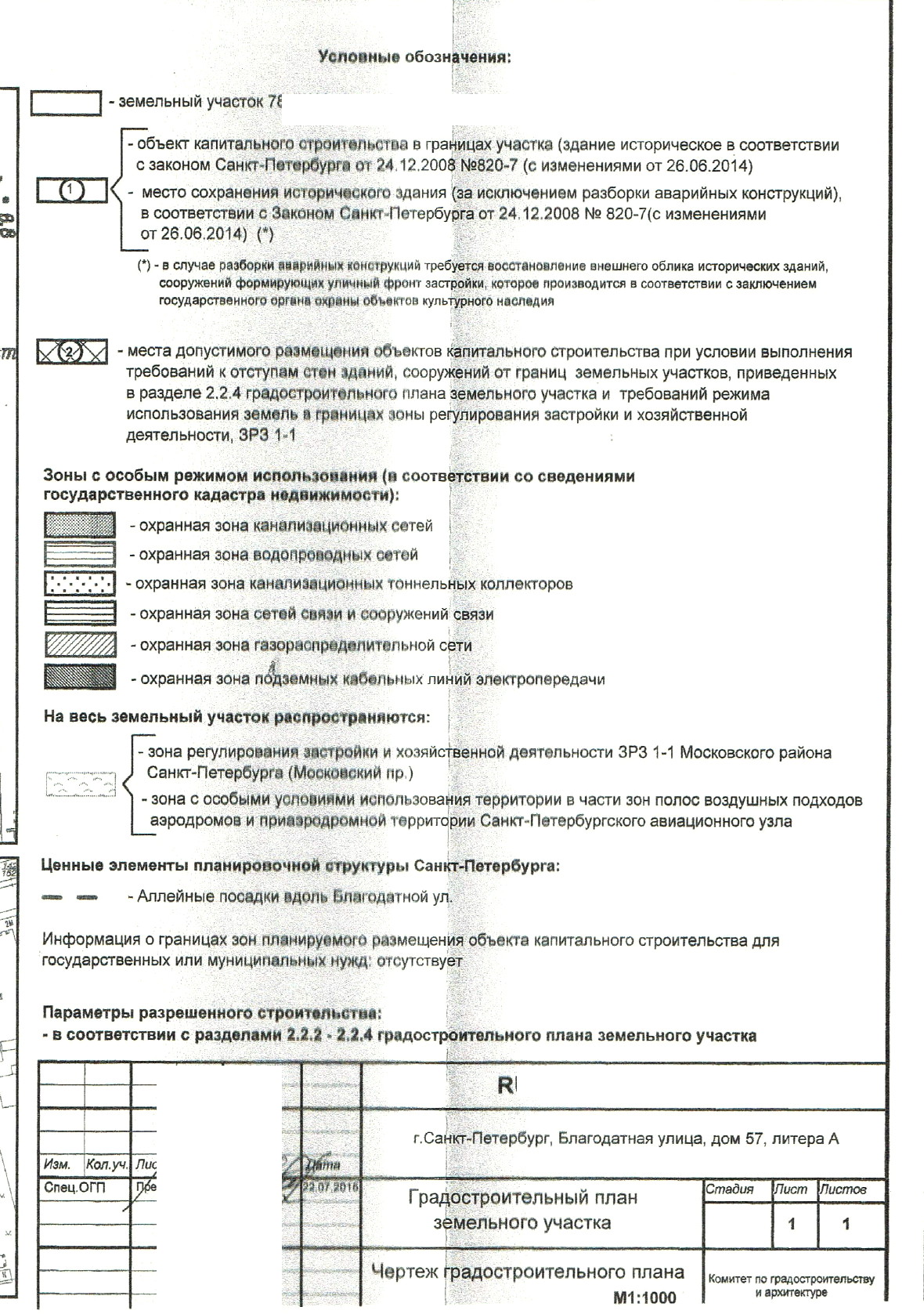 - положительное КГИОП от 08)04.2016 г. по проектным решениям, предусматривающим сохранение только части фундамента здания в осях 1А/1-12А и П/А-Д/А и демонтаж стены по ул. Благодатная